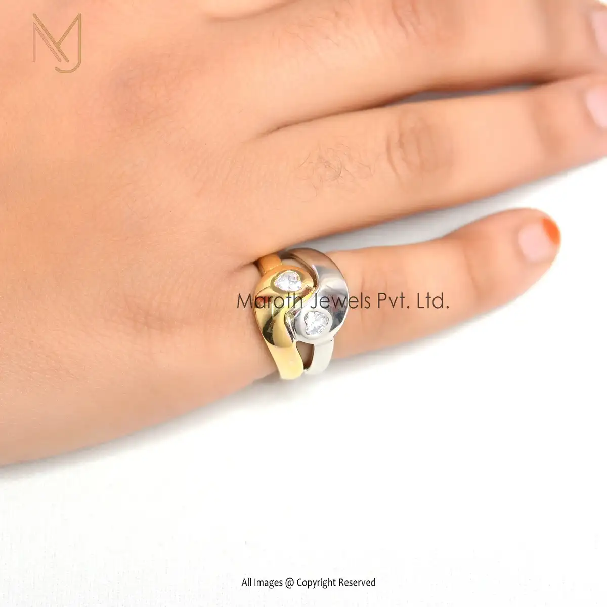 14K White Gold Yellow Gold White Topaz Hearts Ring Manufacturer