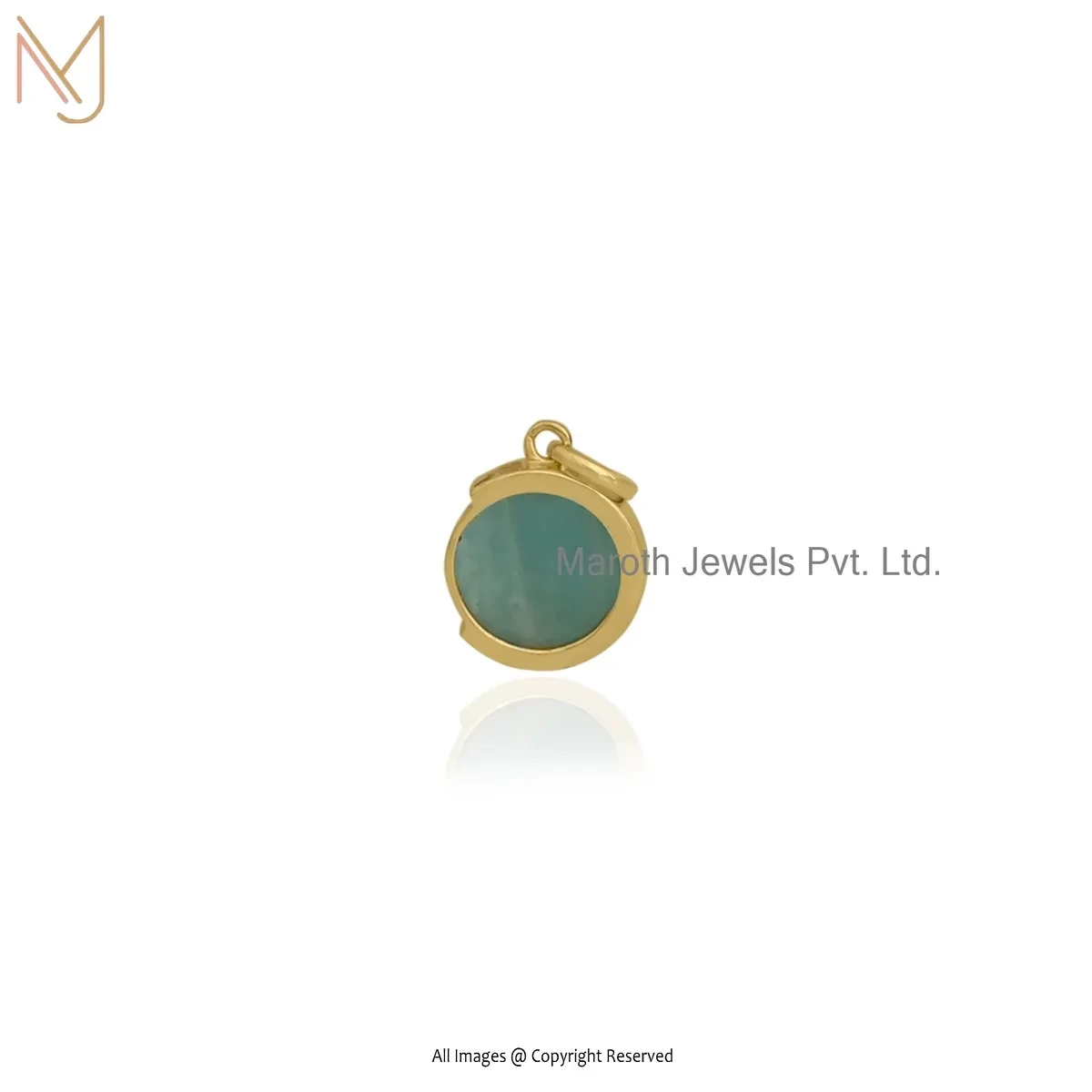 14K Yellow Gold Amazonite Happy Face Pendant Custom Jewelry