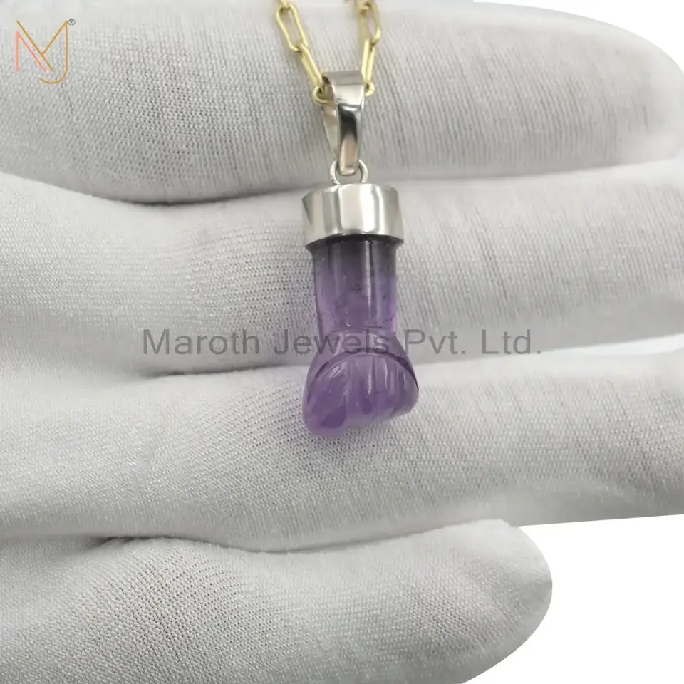 14K Yellow Gold Amethyst Figa Hand Pendant Custom Jewelry