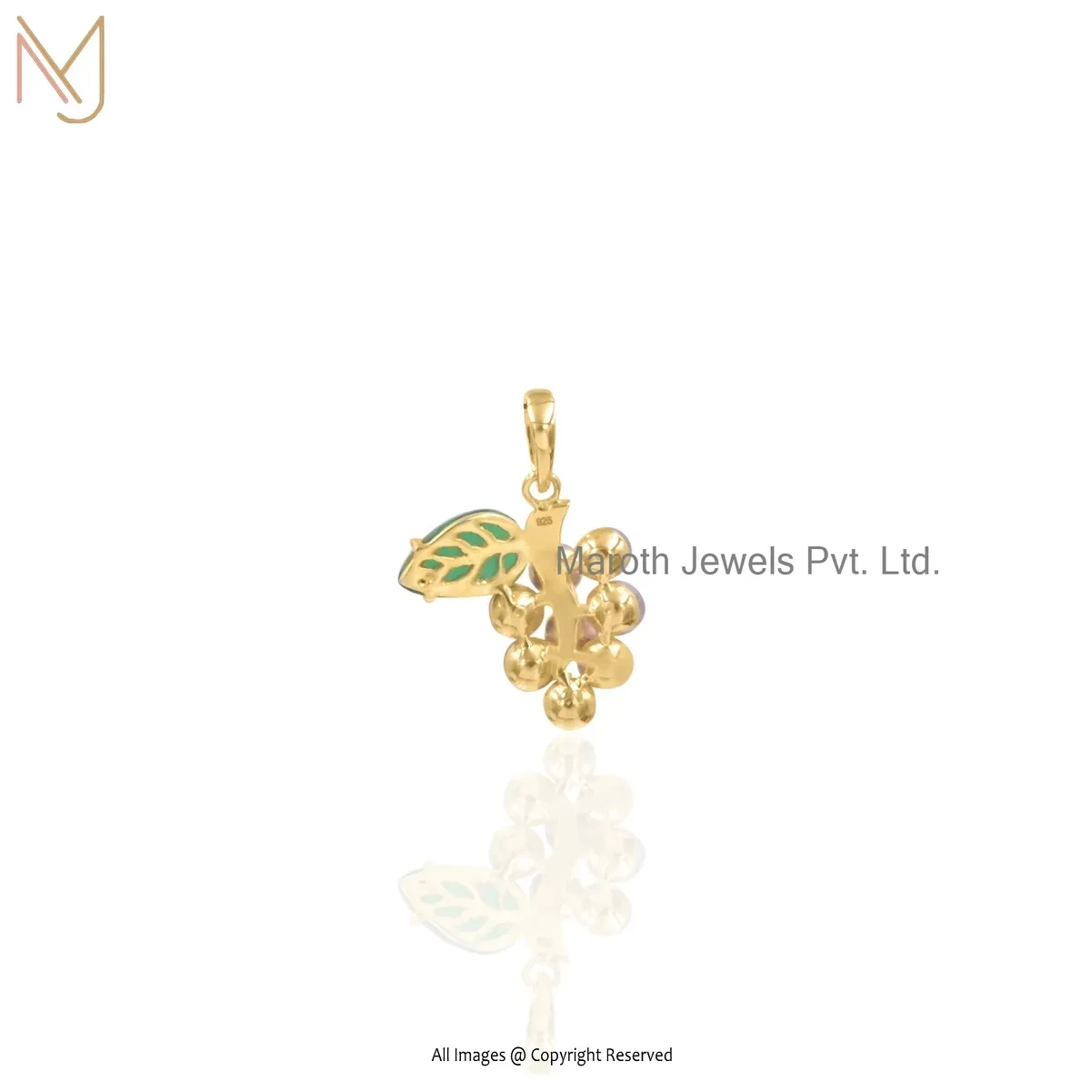 14K Yellow Gold Amethyst & Green Quartz Gemstone Grapes Pendant Custom Jewelry