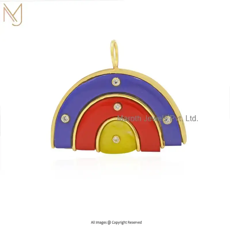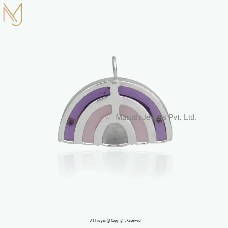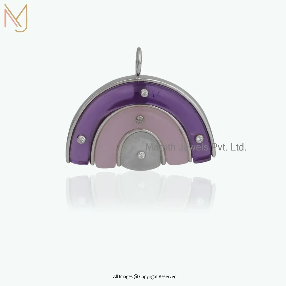 14K Yellow Gold Amethyst & Rose Quartz And Moonstone Rainbow Pendant USA
