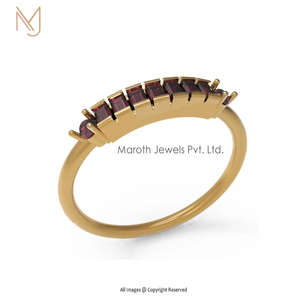 14K Yellow Gold Baguettes Ruby Gemstone Ring Designs Jewelry Manufacturer