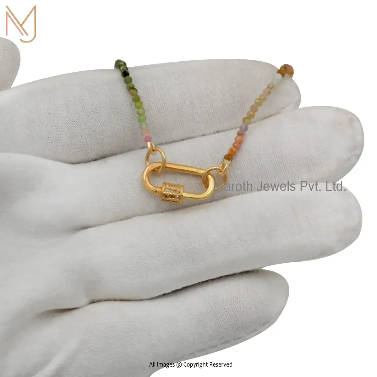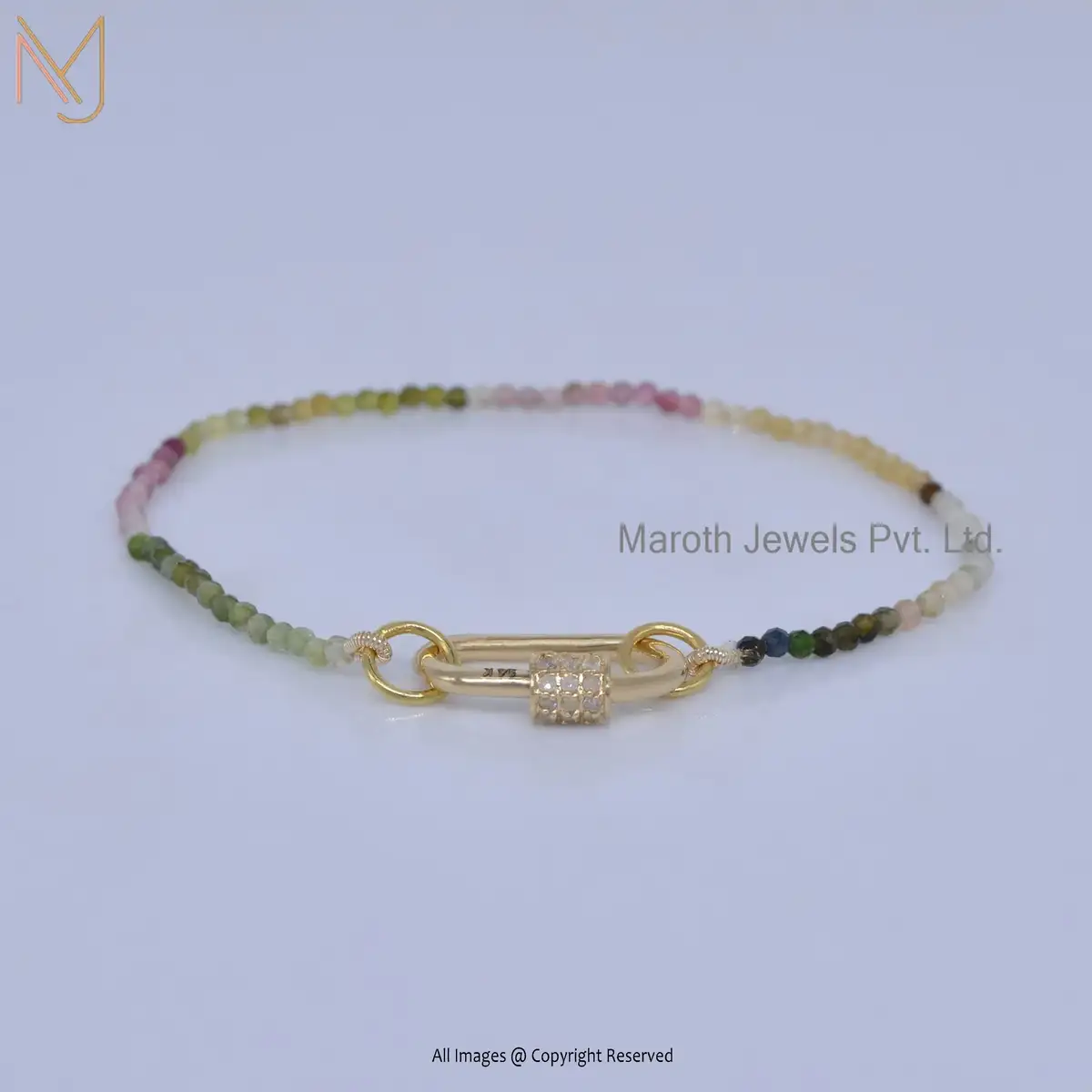 14K Yellow Gold Beads Gemstone Carabiner Bracelet Jewelry Supplier
