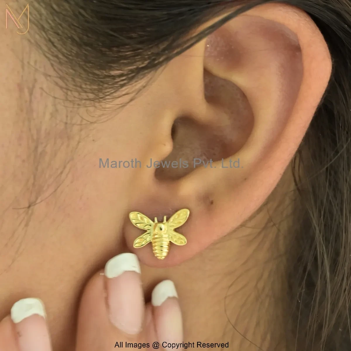 14K Yellow Gold Bee Stud Earring Jewelry Supplier