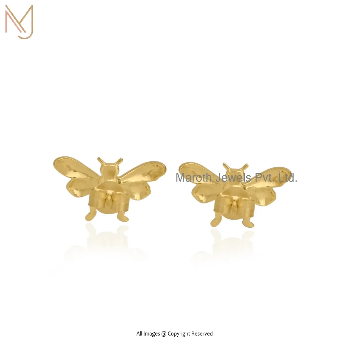 14K Yellow Gold Bee Studs Earrings Jewelry Supplier