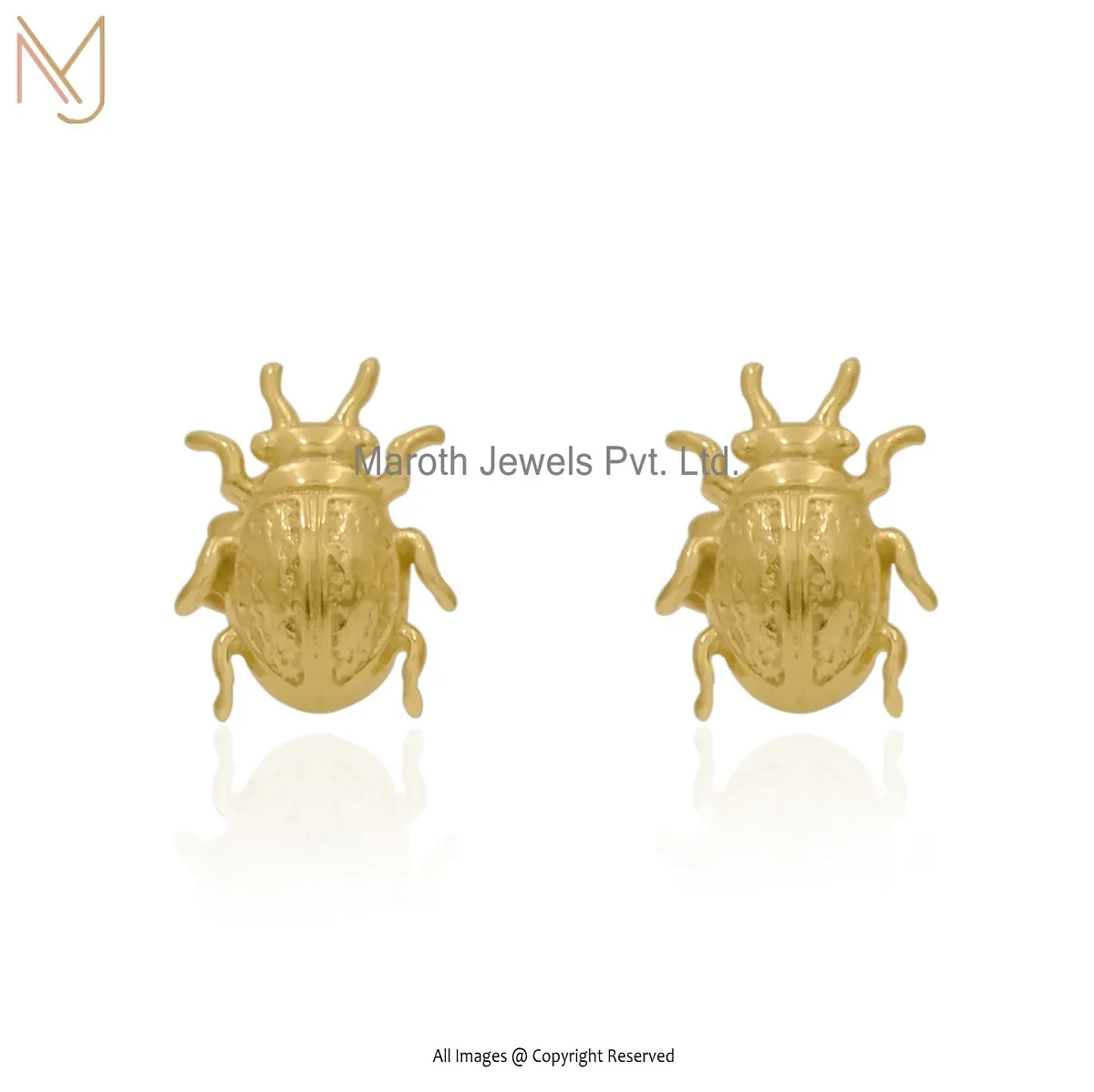 14K Yellow Gold Beetel Stud Earring Jewelry Supplier
