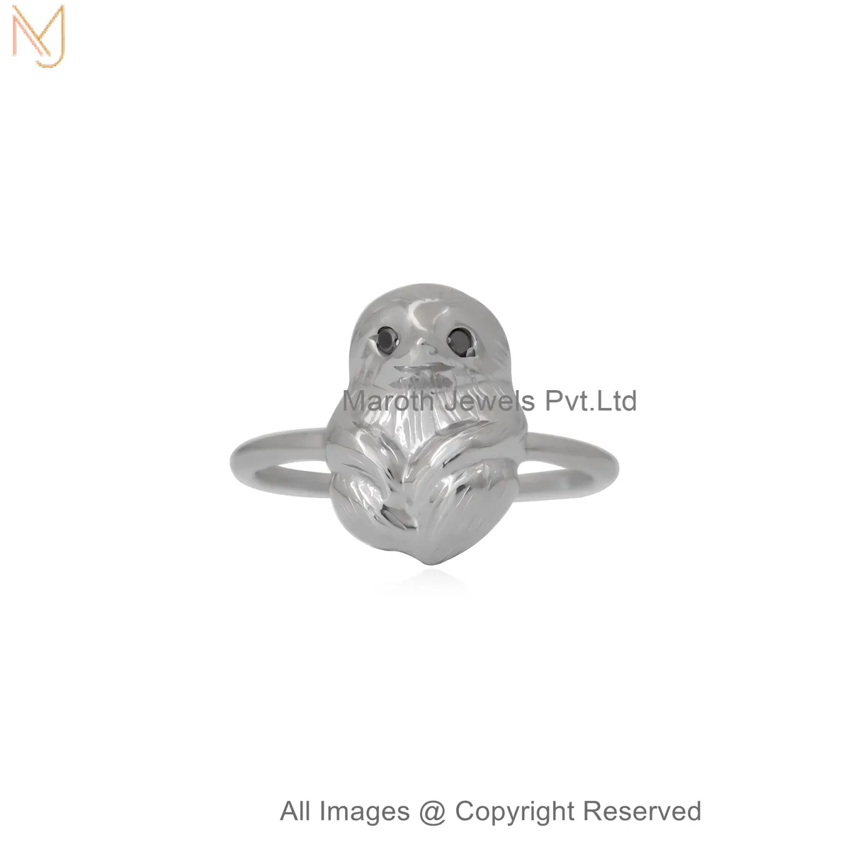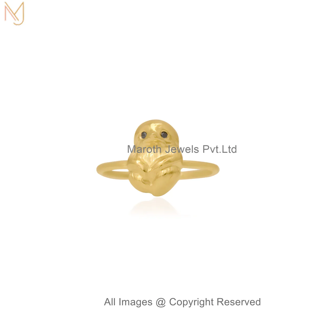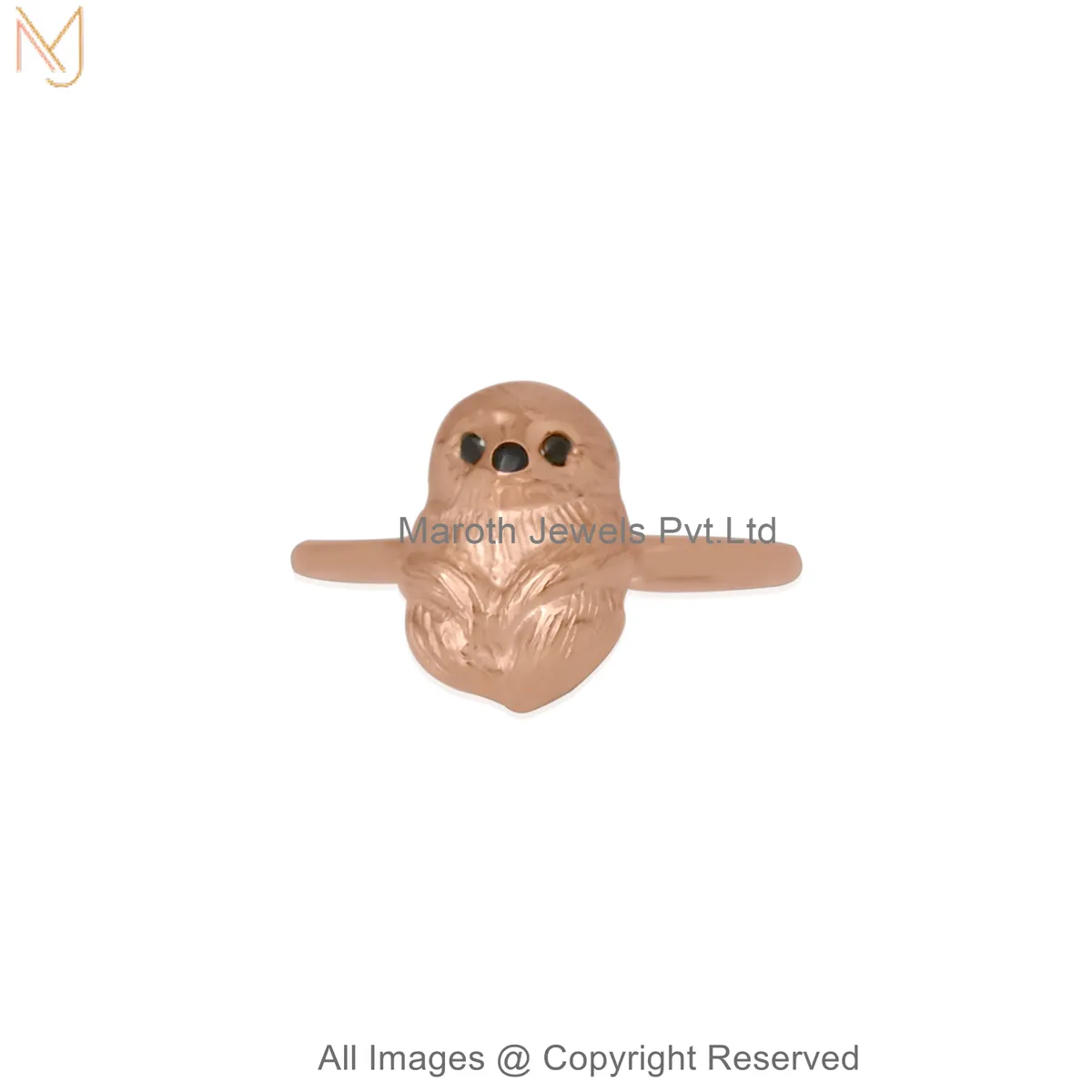 14K Yellow Gold Black Cubic Zircon Cute Sloth Charm Statement Ring Jewelry Supplier