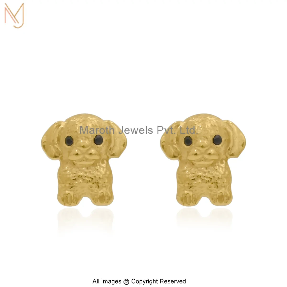 14K Yellow Gold Black Cubic Zircon Gold-Toned Cute Puppy Stud Earring Jewelry Supplier