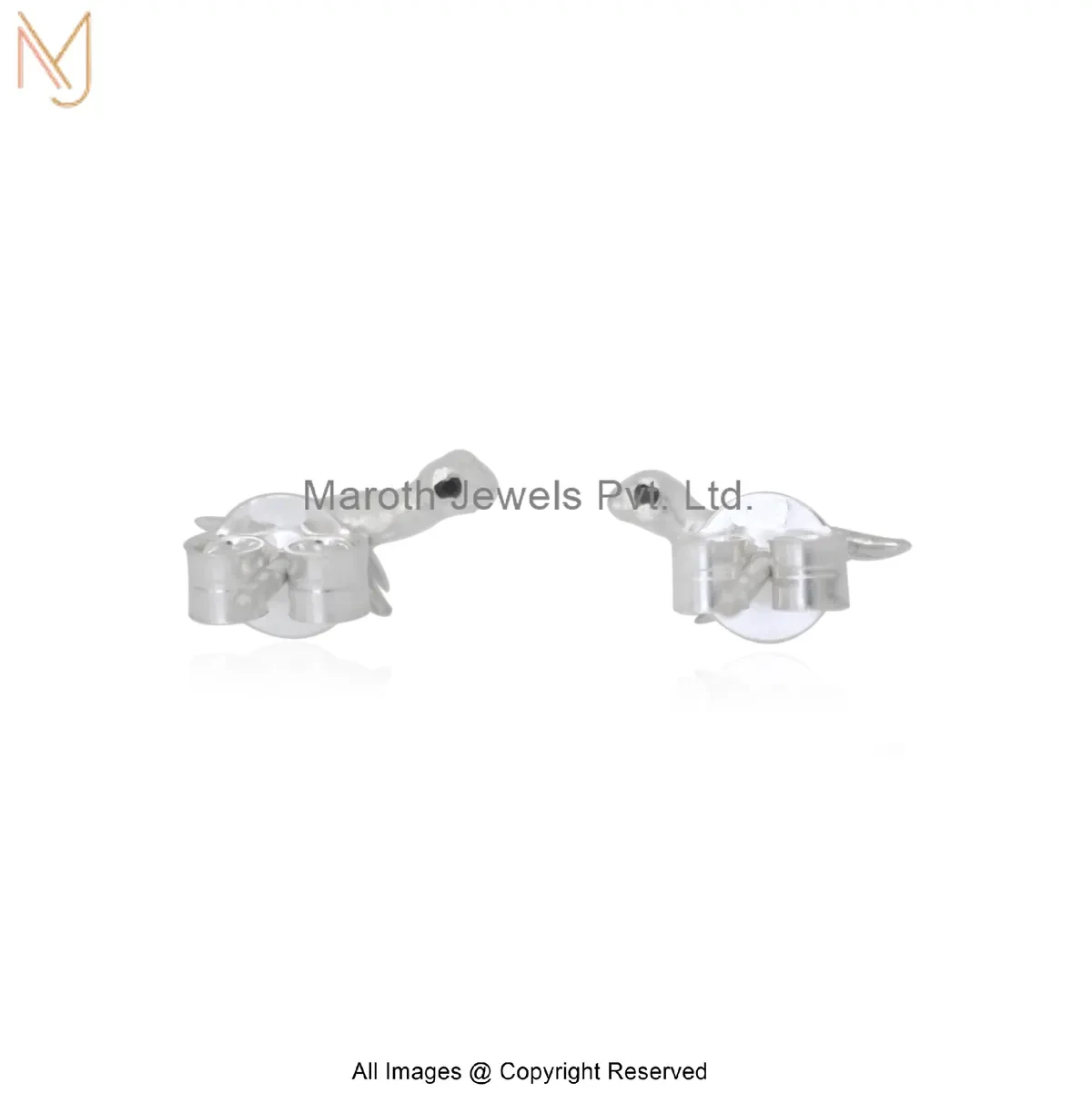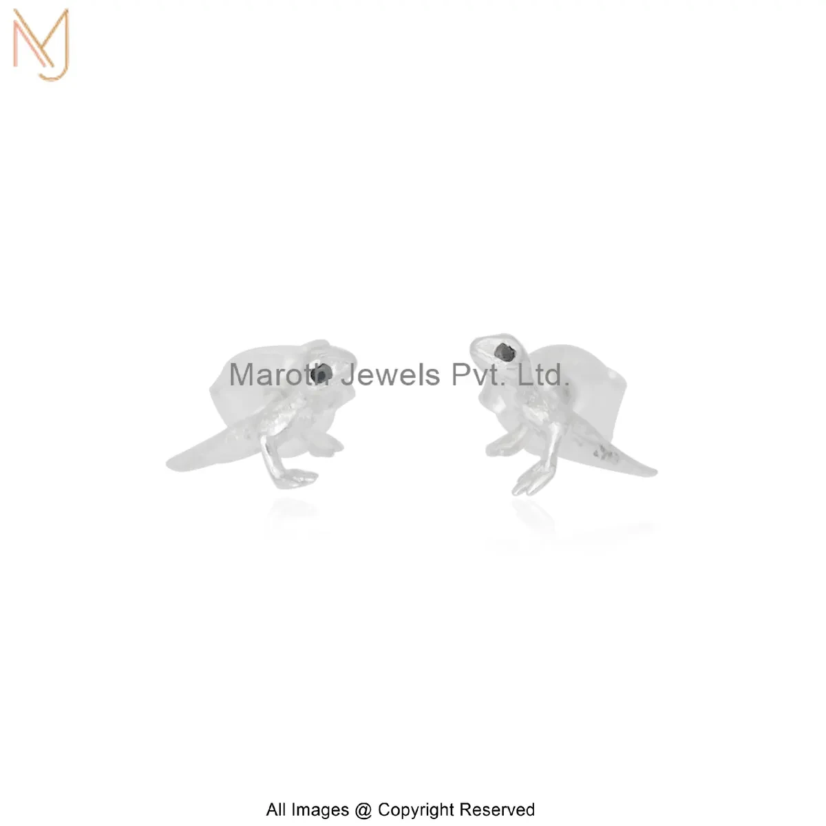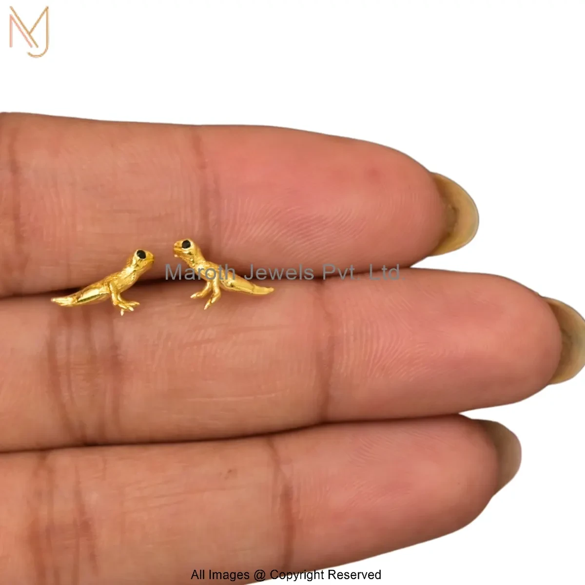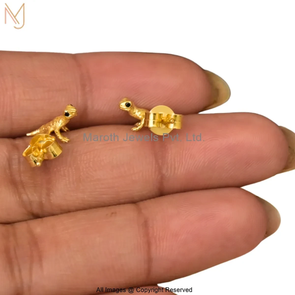 14K Yellow Gold Black Cubic Zircon Lizard Stud Earrings Jewelry Supplier