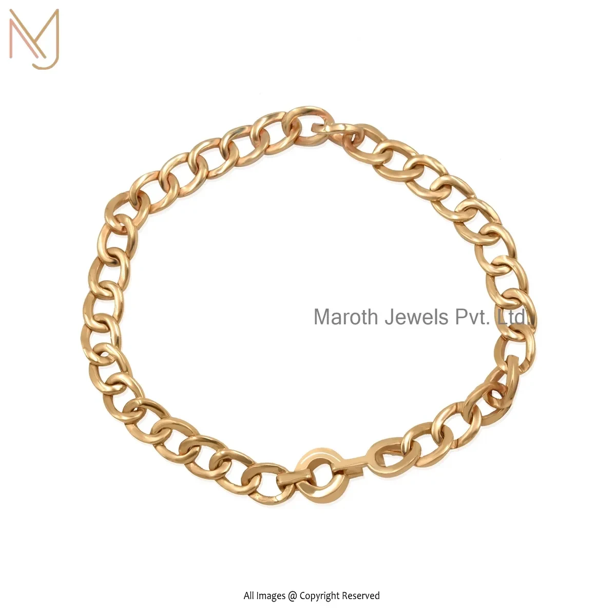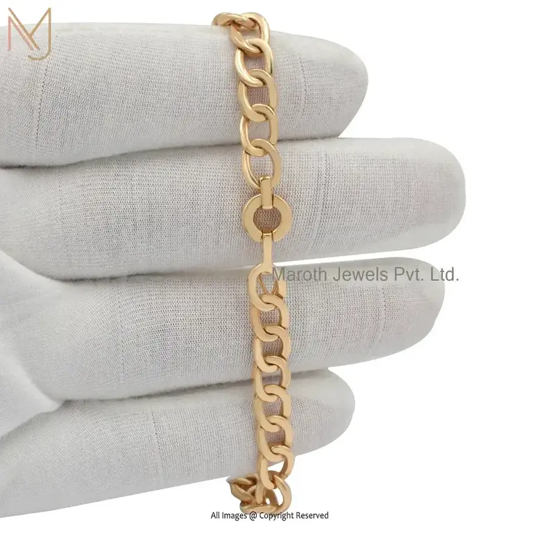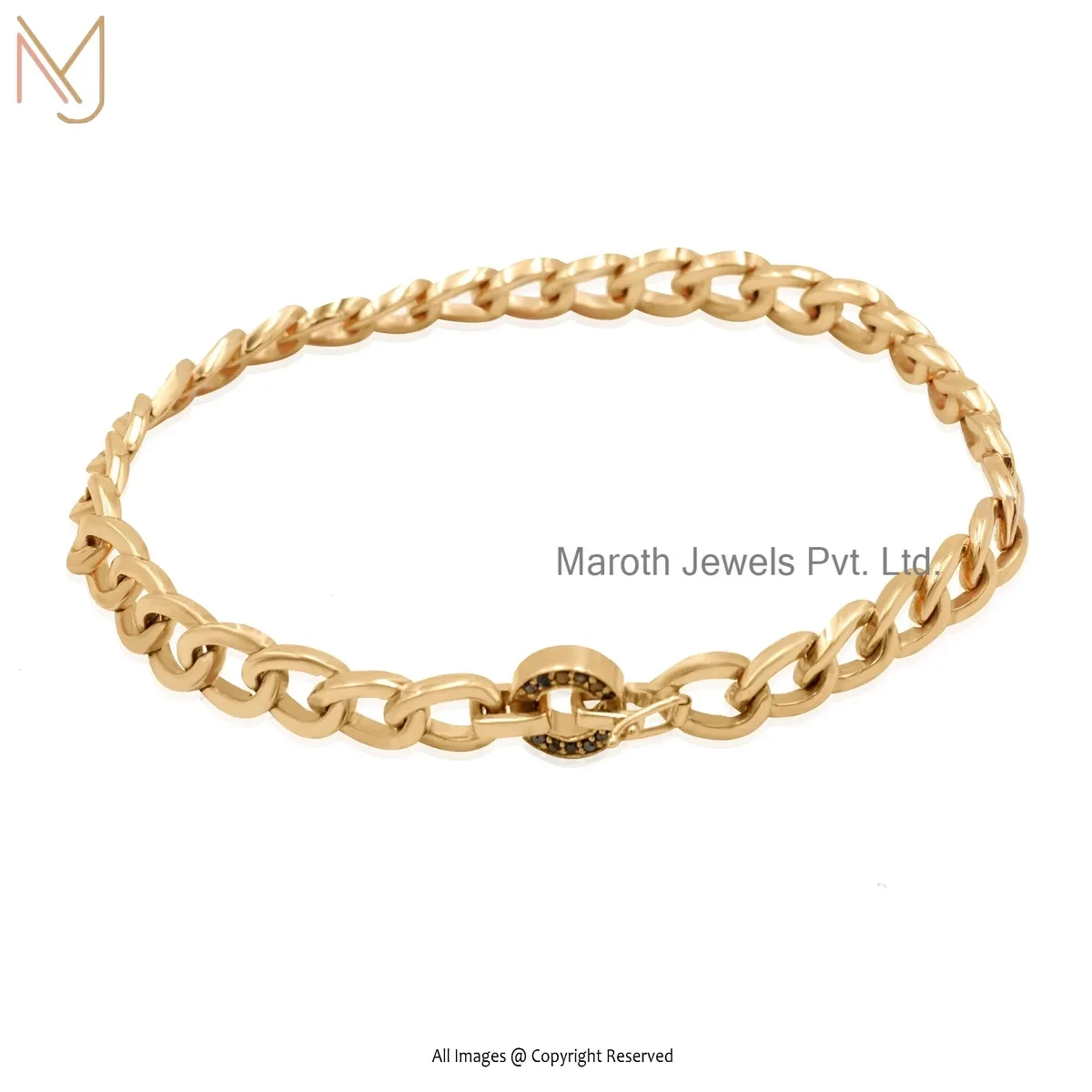14K Yellow Gold Black Diamond Figaro Curb Chunky Link Bracelet Custom Jewelry