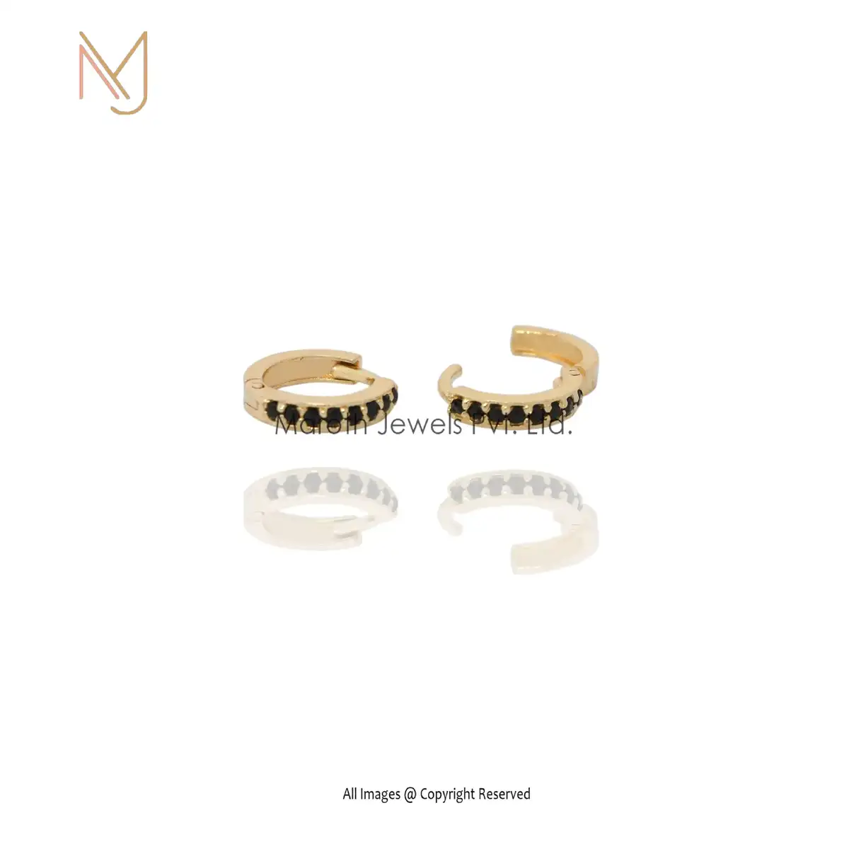 14K Yellow Gold Black Diamond Huggies Earrings Jewelry Manufacturer