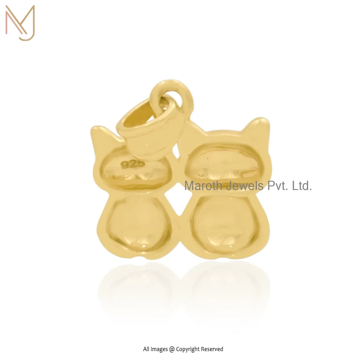 14K Yellow Gold Black Enamel Cats Charm Pendant Custom Jewelry