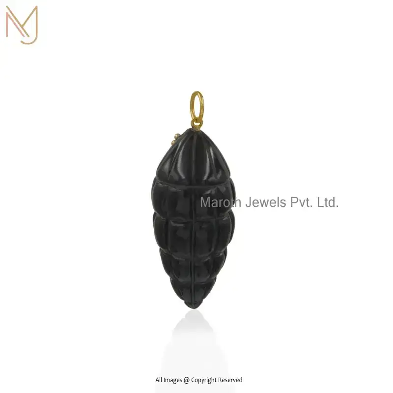 14K Yellow Gold Black Onxy & CZ Gemstons Shell Pendant Custom Jewelry