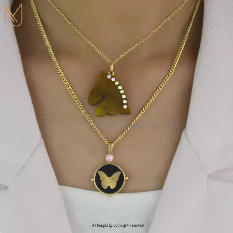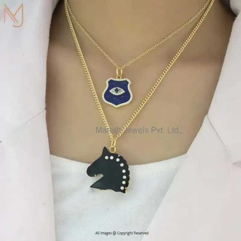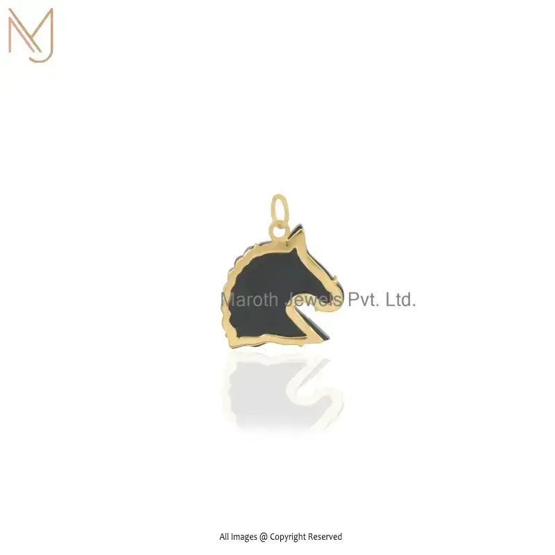 14K Yellow Gold Black Onxy & White Cubic Zircoina Gold Unicorn Pendant USA