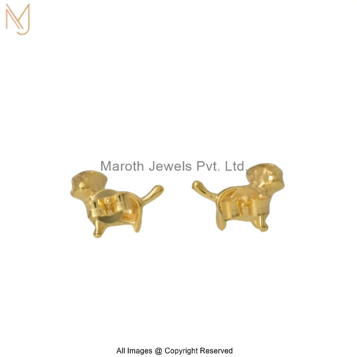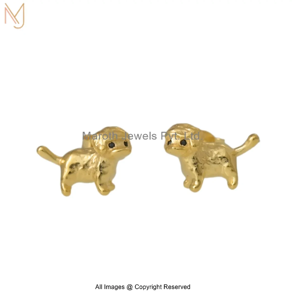 14K Yellow Gold Black Spinel Cute Puppy Stud Earring Manufacturer
