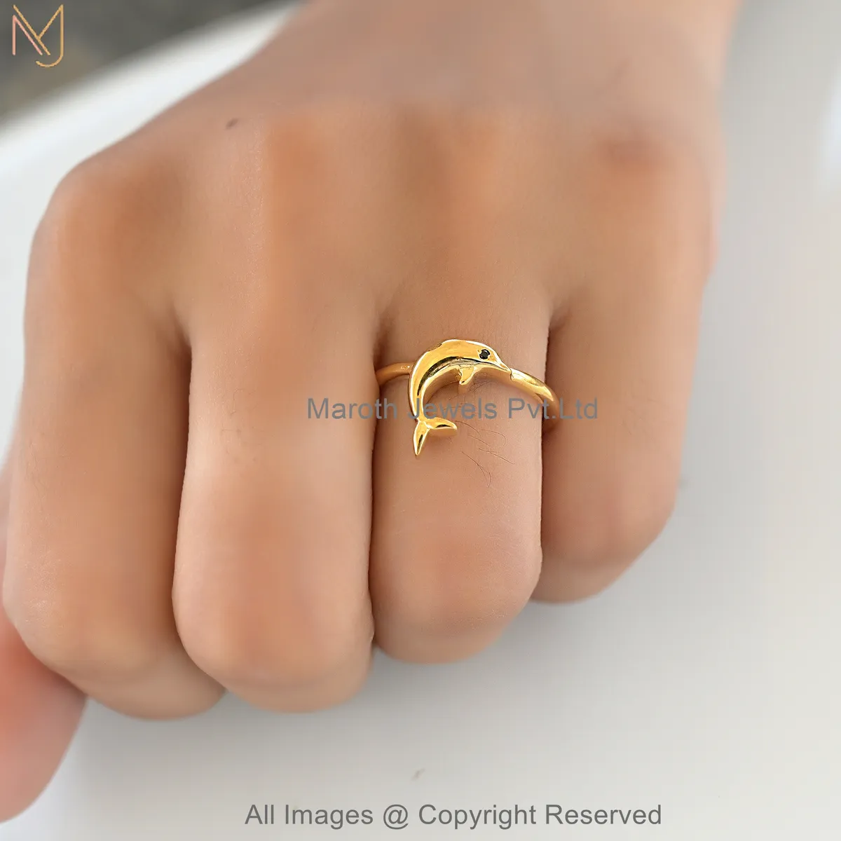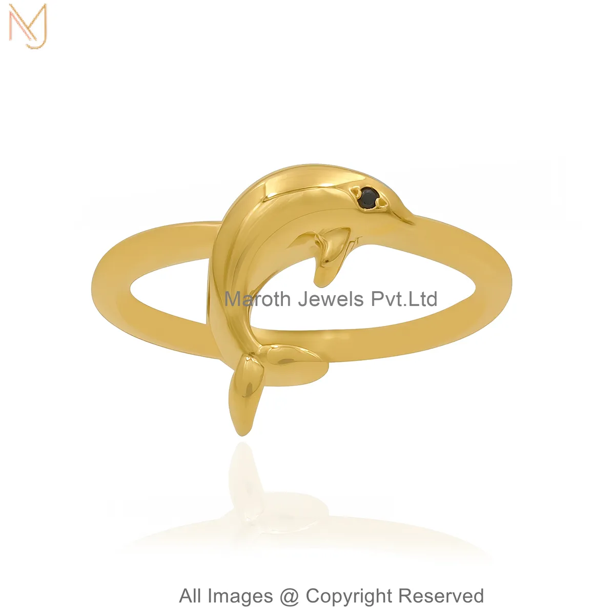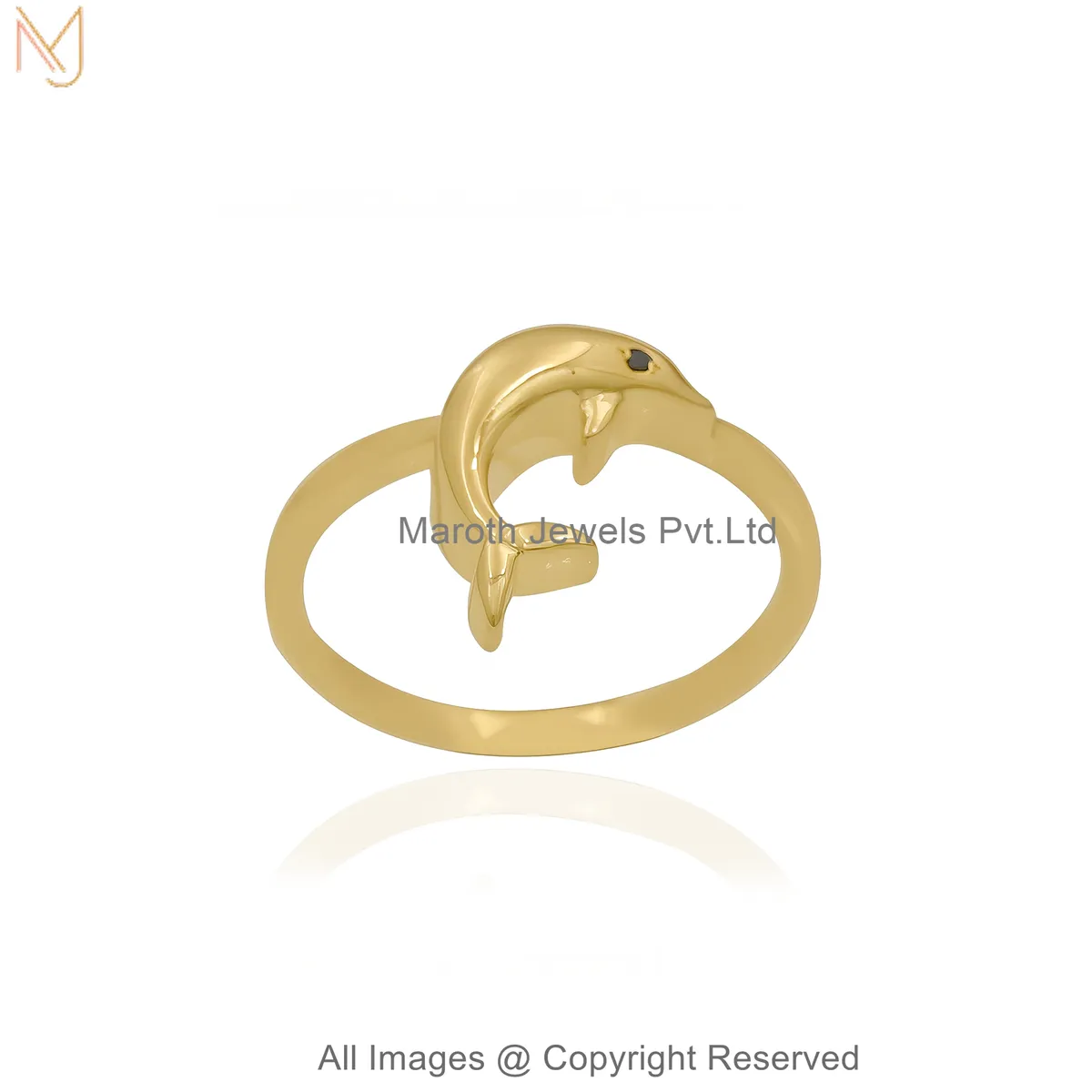 Looking For 14K Yellow Gold Black Spinel Dolphin Ring Custom Jewelry