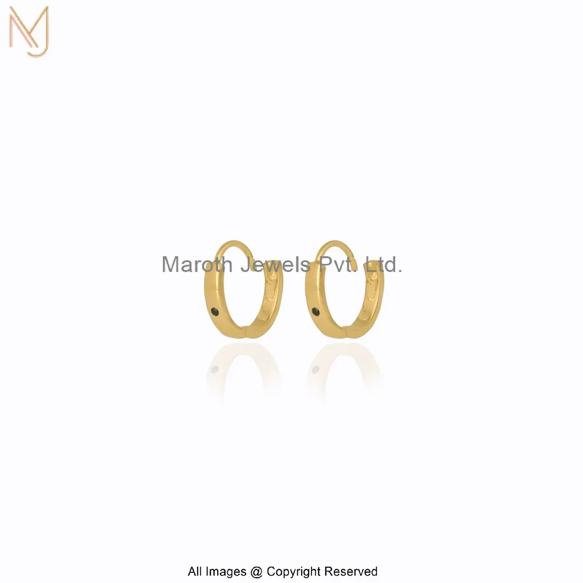 14K Yellow Gold Black Spinel Huggies Hoop Earring Jewelry Supplier