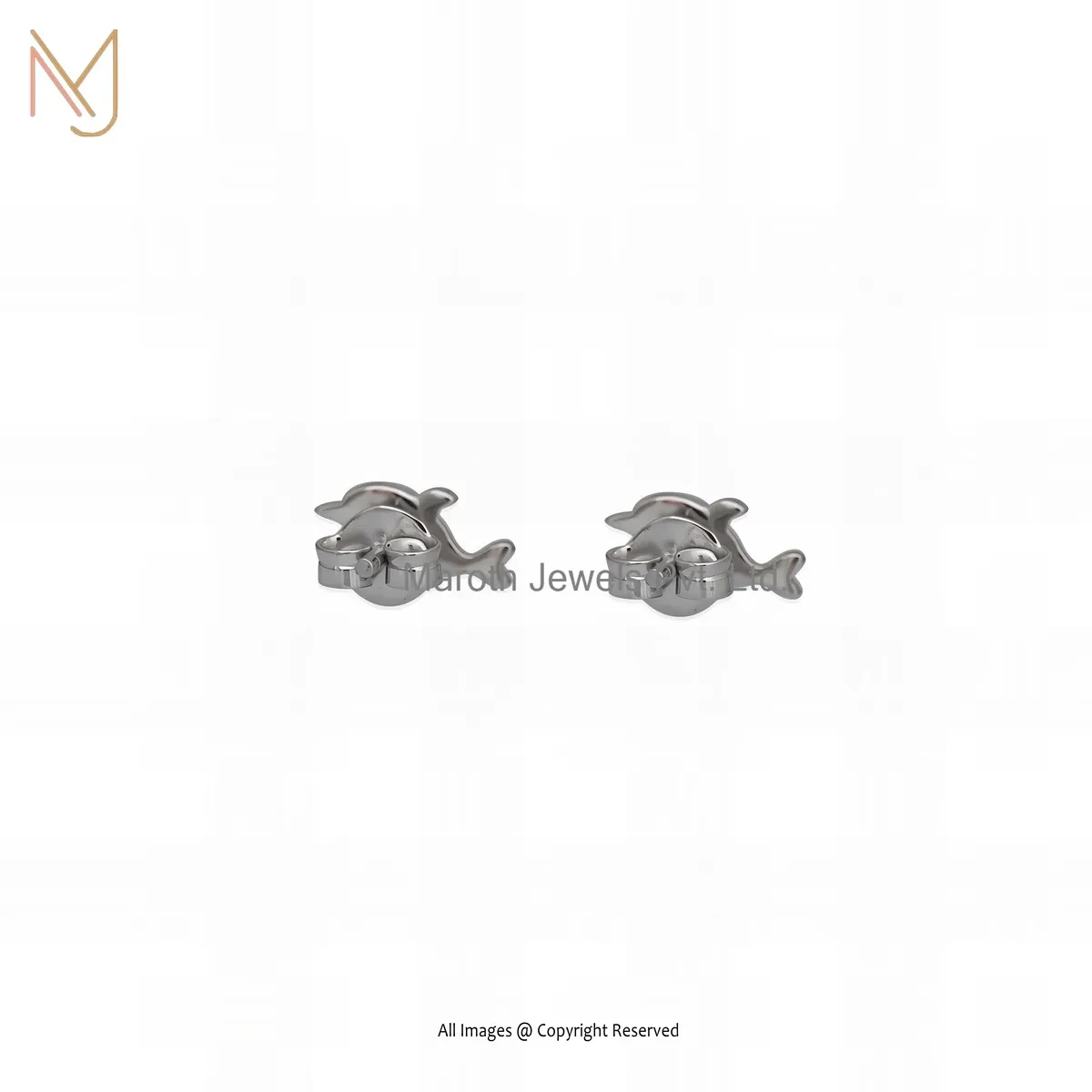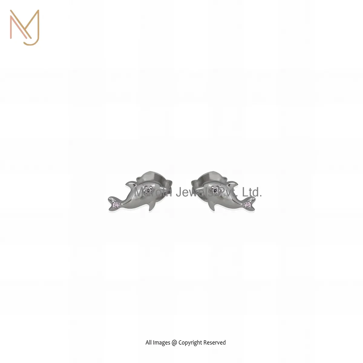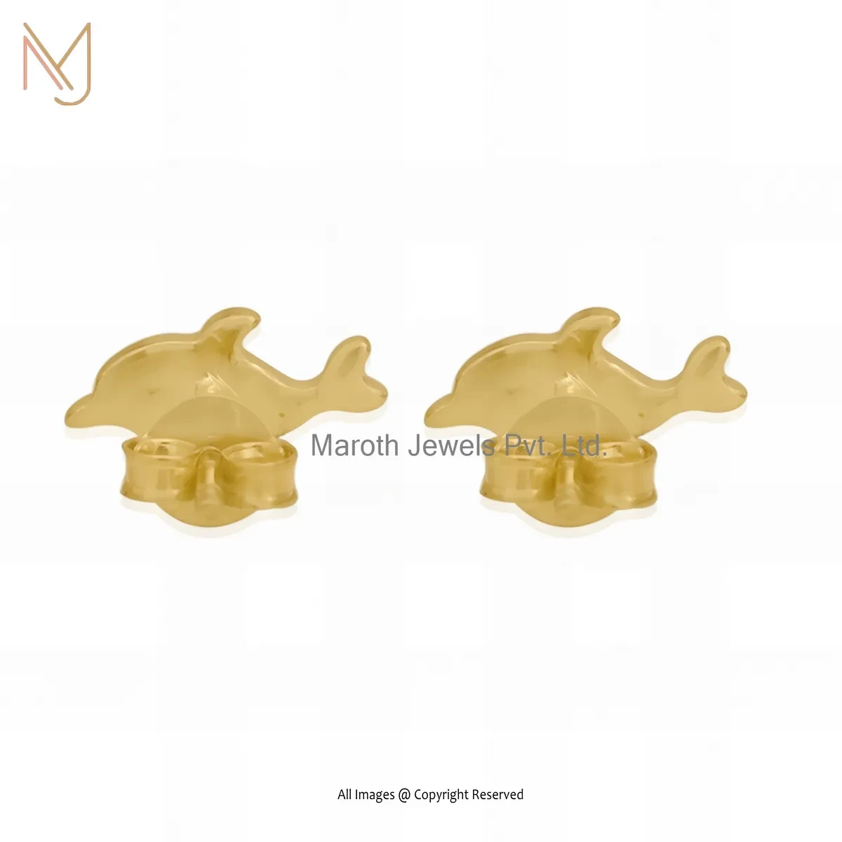 14K Yellow Gold Blue CZ Dolphin Stud Earring Custom Jewelry