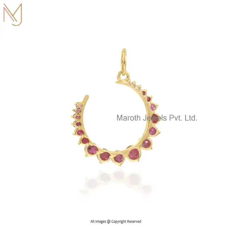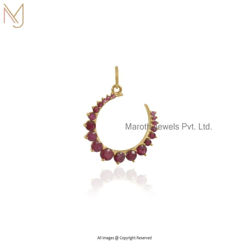 14K Yellow Gold Blue Sapphire Crescent Moon Charm Pendant Custom Jewelry