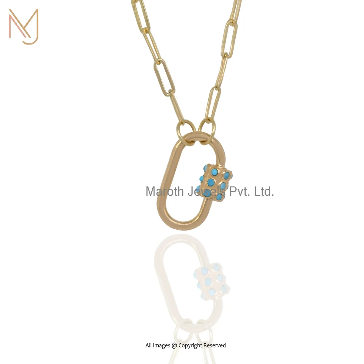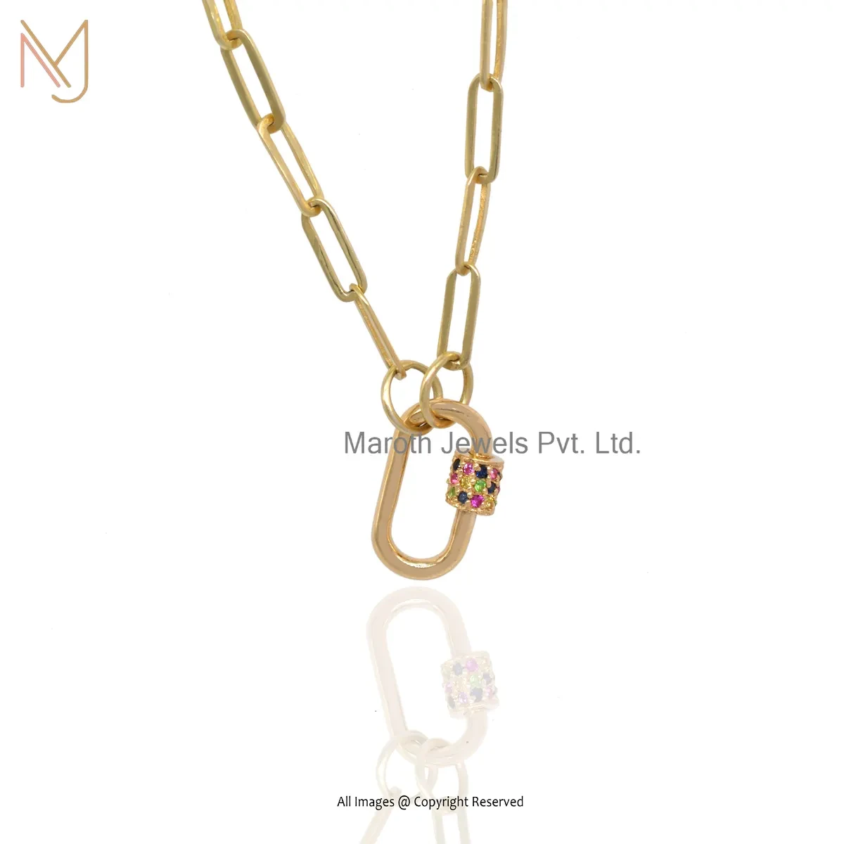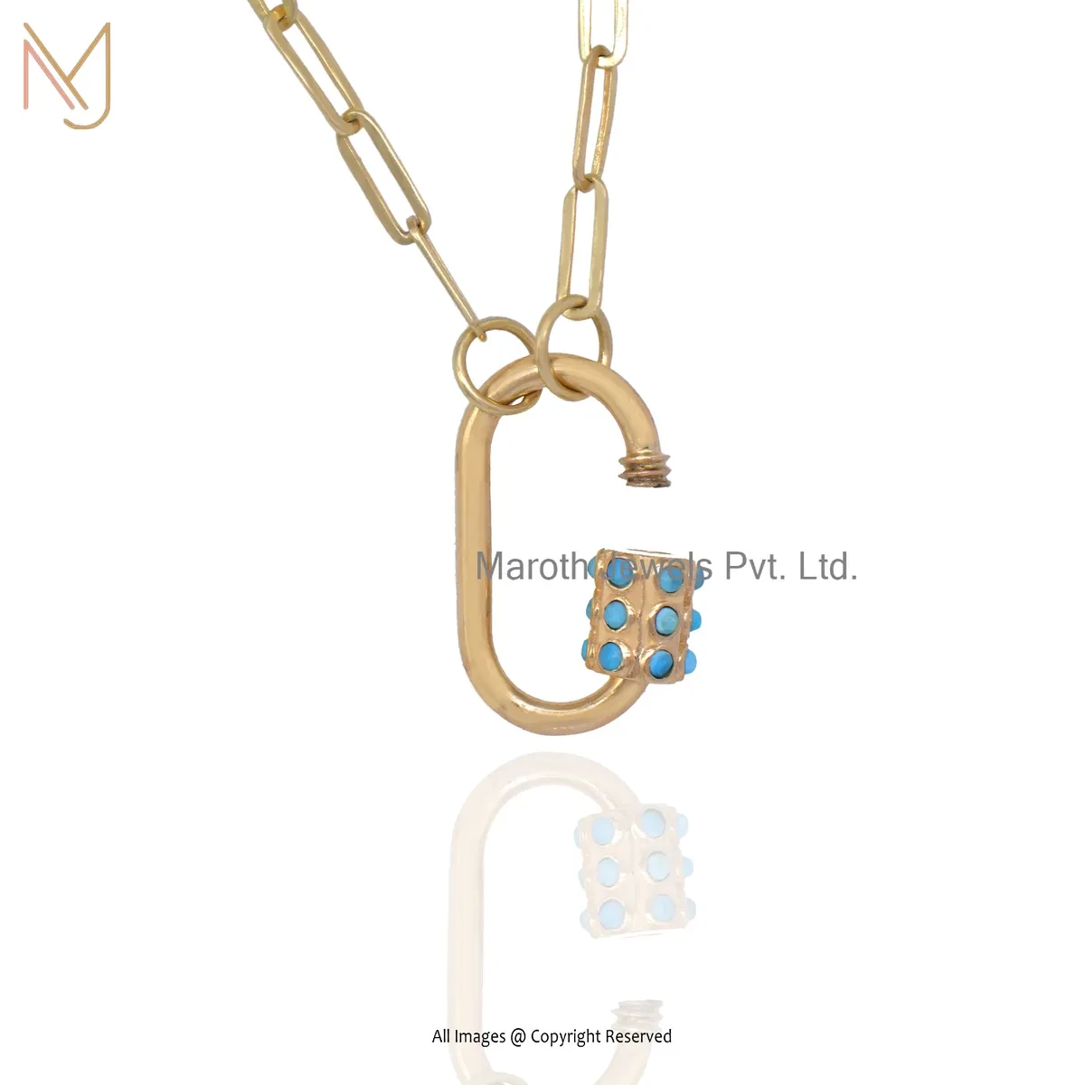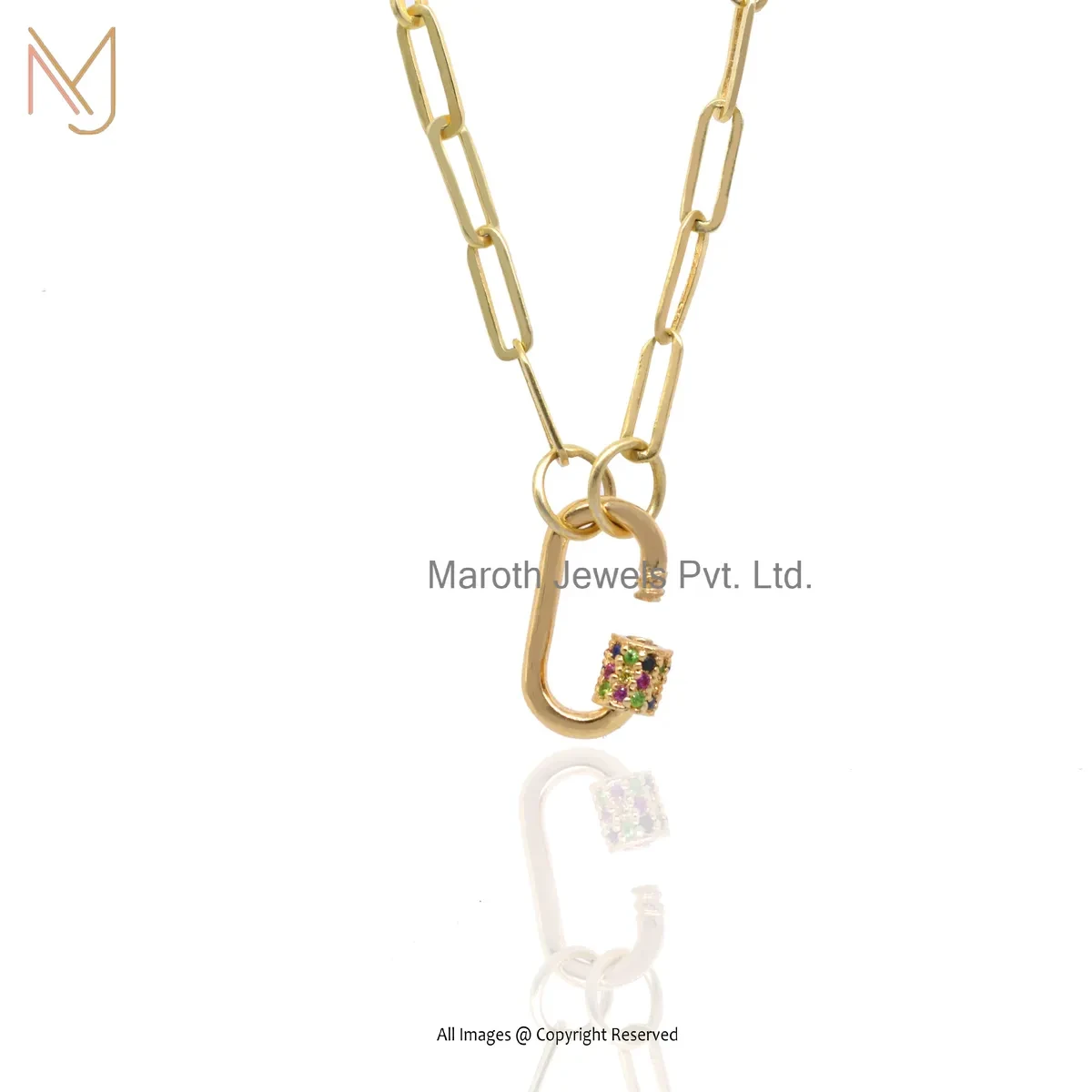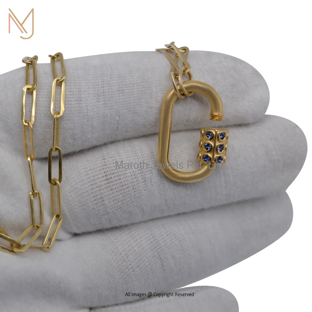 14K Yellow Gold Blue Sapphire Gemstone Carabiner Lock Jewelry Manufacturer
