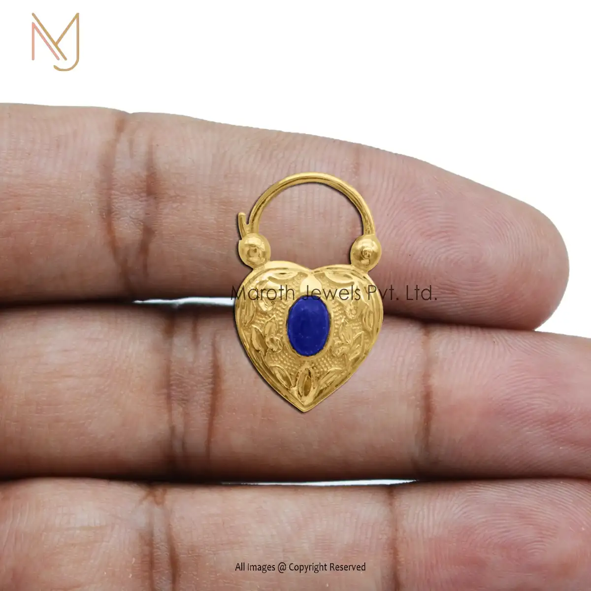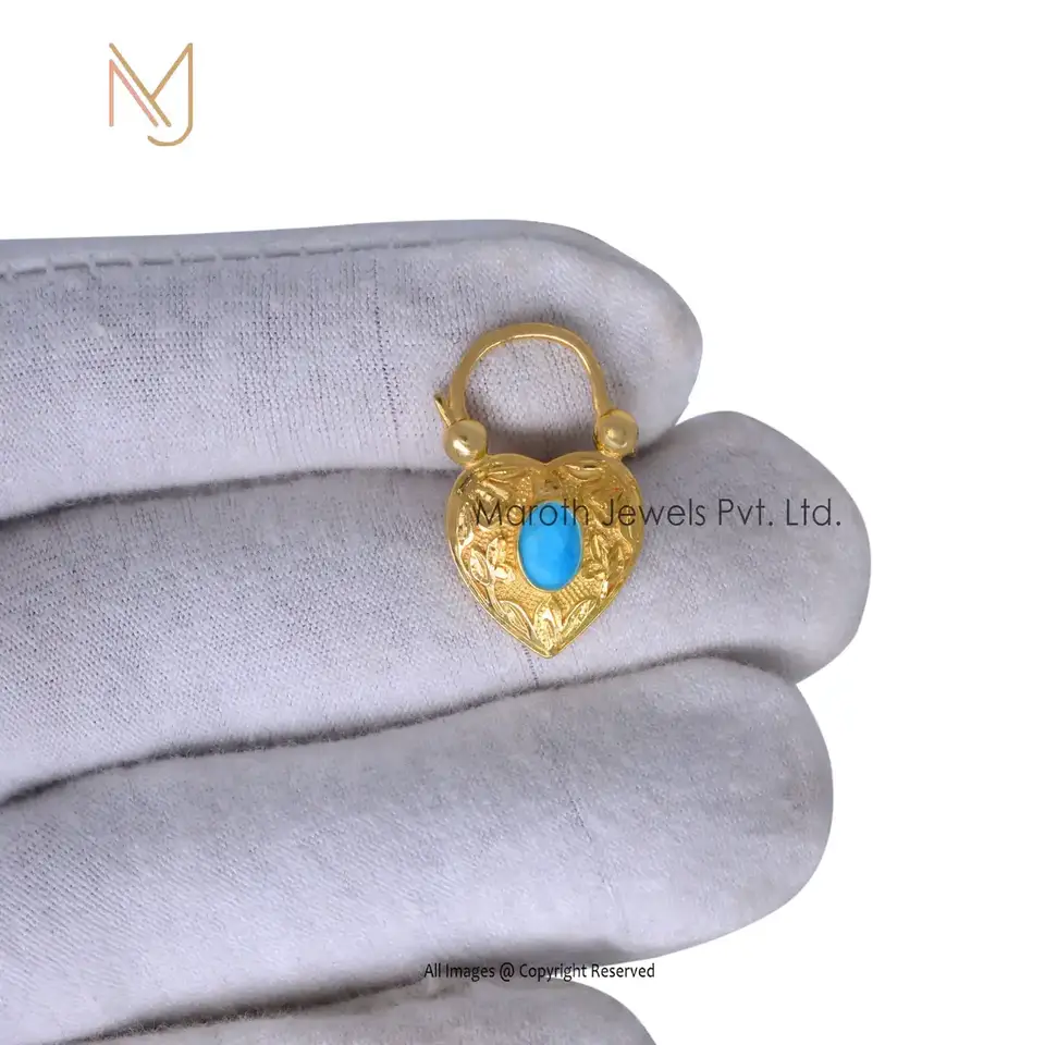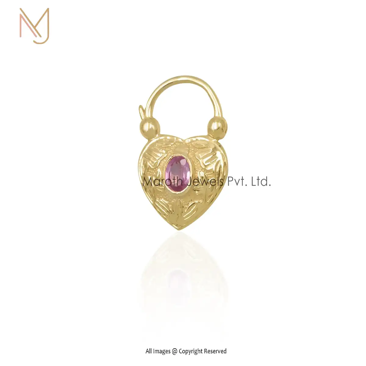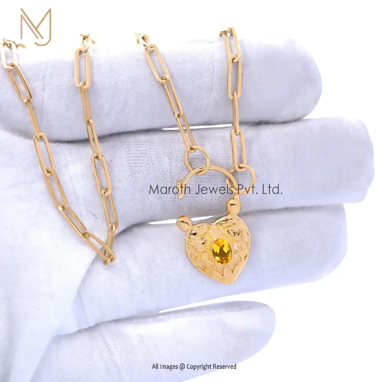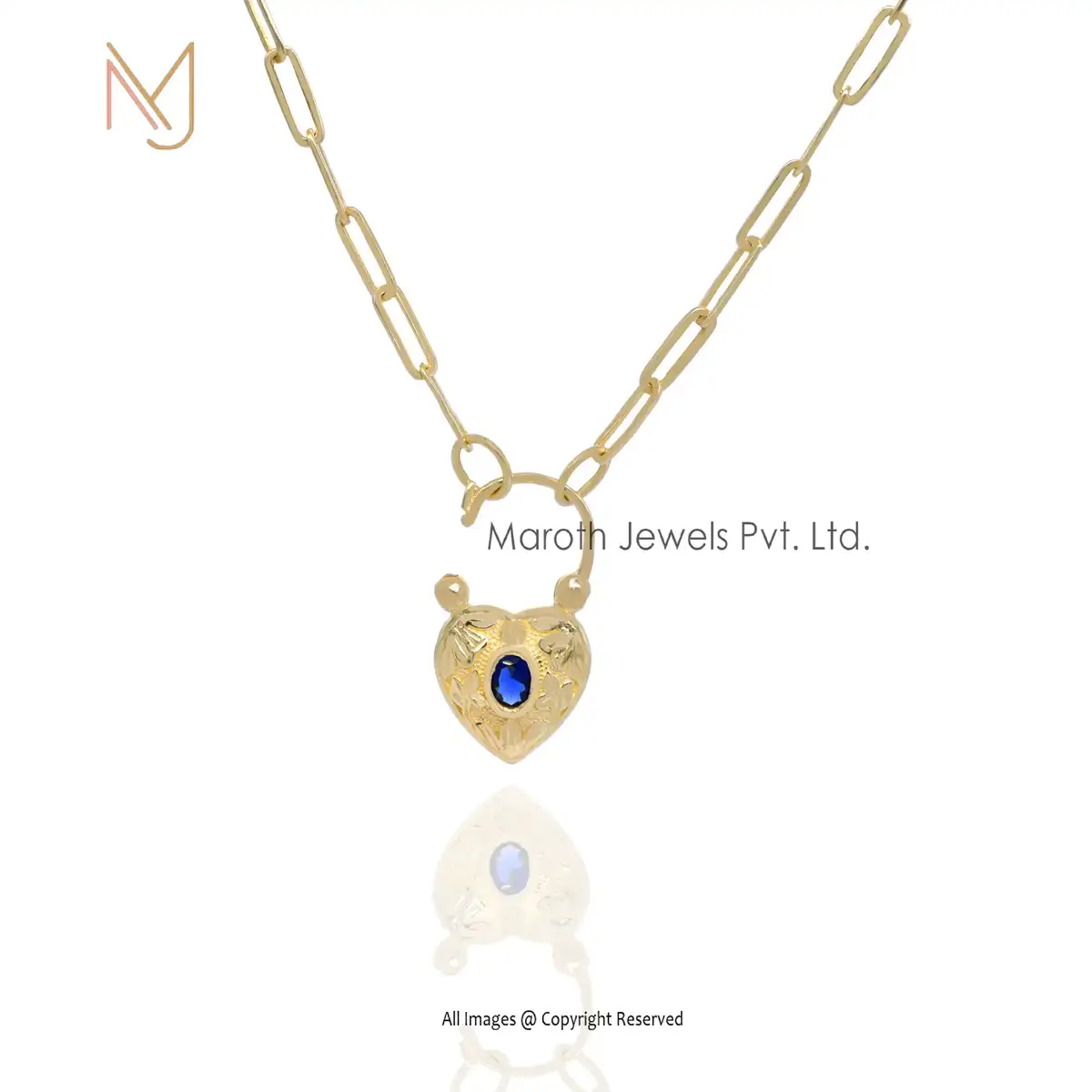 14K Yellow Gold Blue Sapphire Heart Padlock Jewelry Supplier