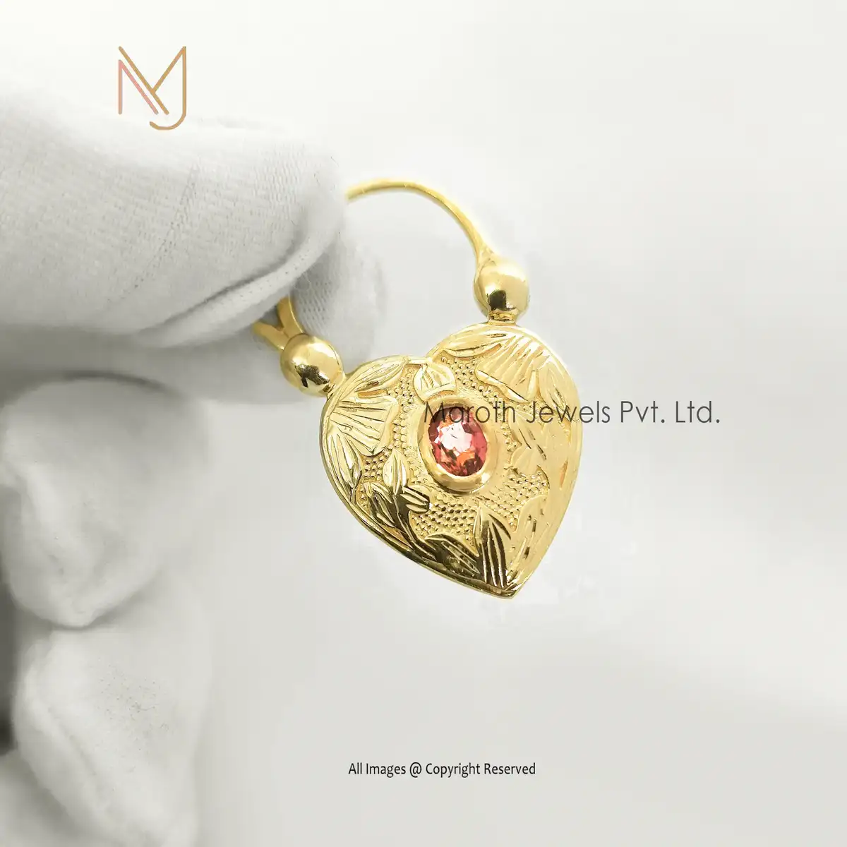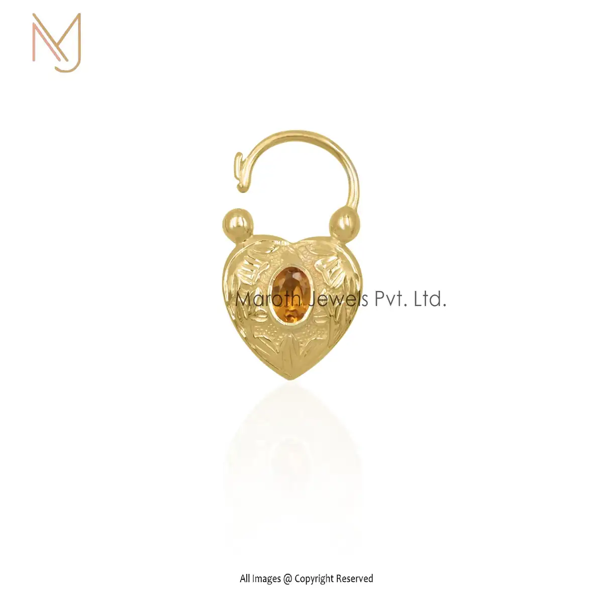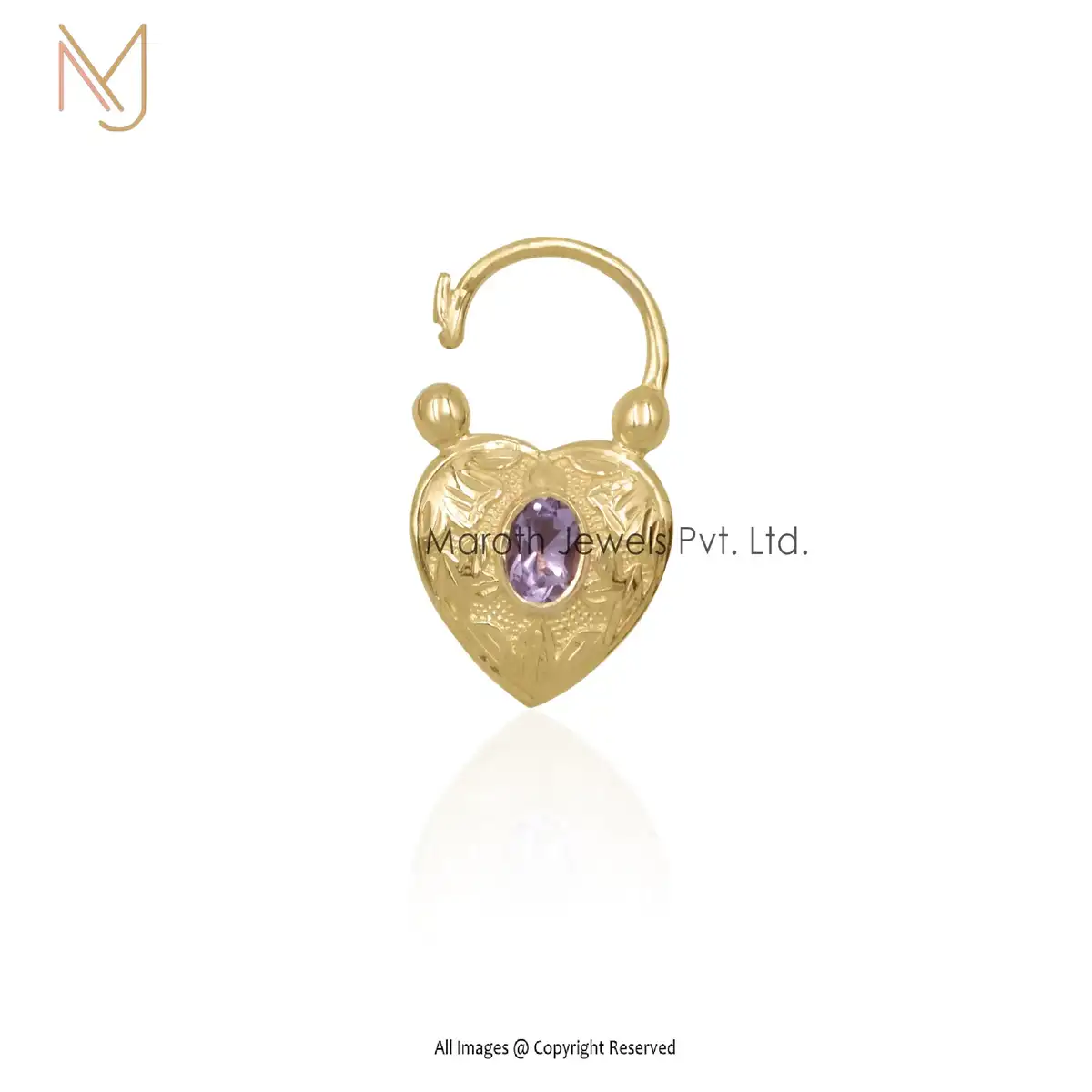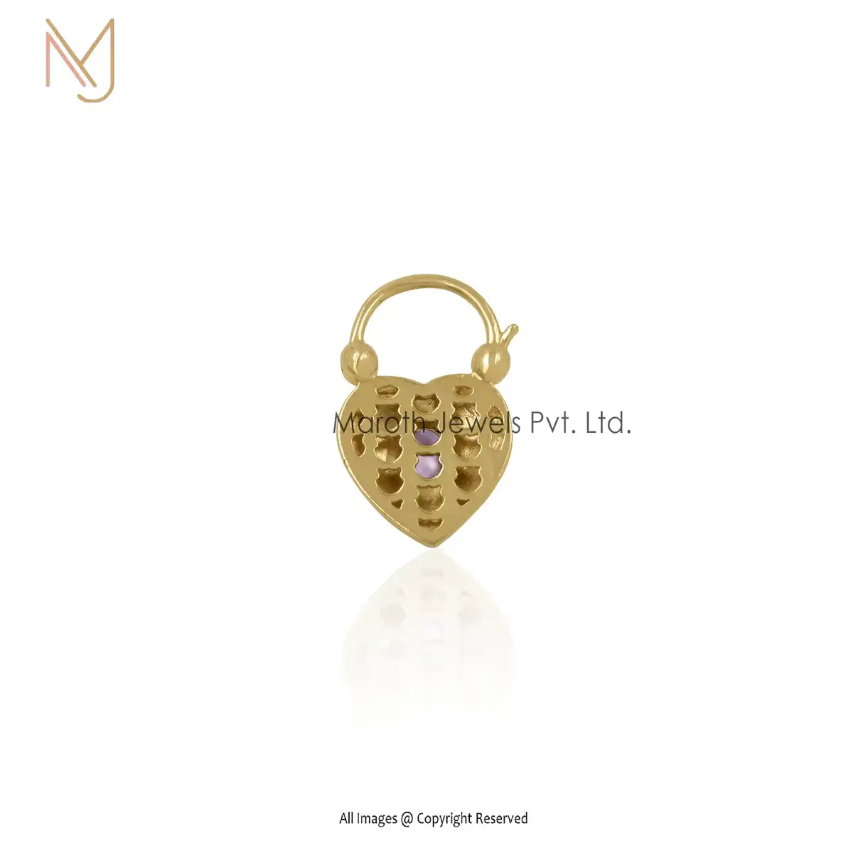 14K Yellow Gold Blue Sapphire Heart Padlock Jewelry Supplier