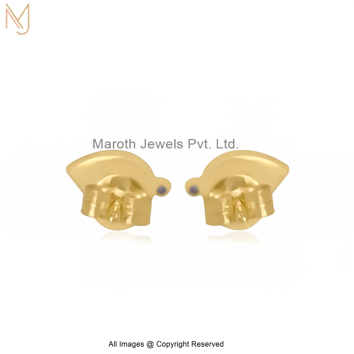 14K Yellow Gold Blue Sapphire Leaf Stud Earring Manufacturer