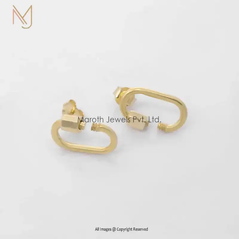 14K Yellow Gold Carabiner Lock Hoop Earrings Custom Jewelry