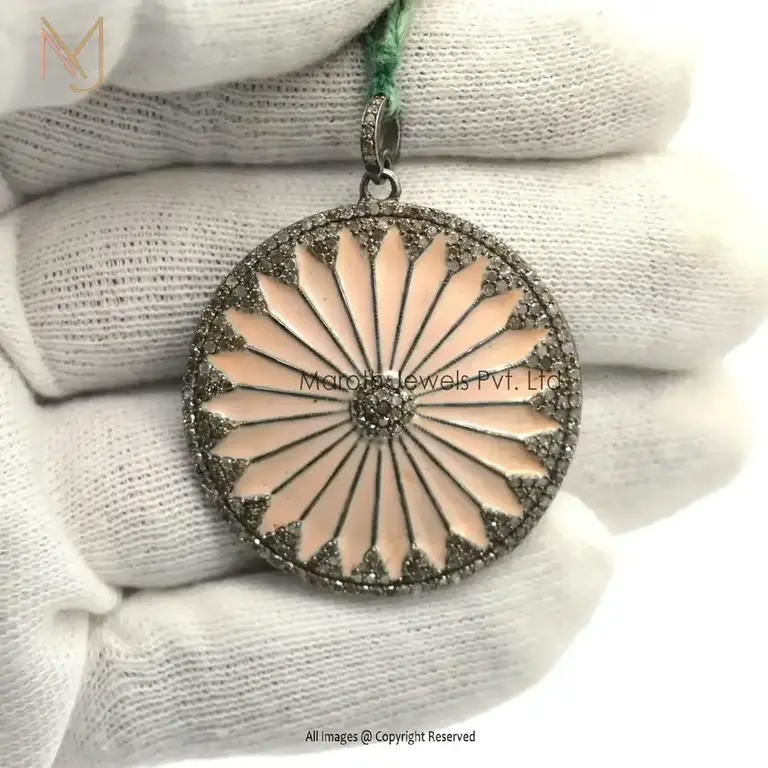 14K Yellow Gold Chakra Brown Enamel Pave Diamond Pendant Jewelry Supplier