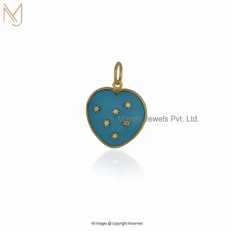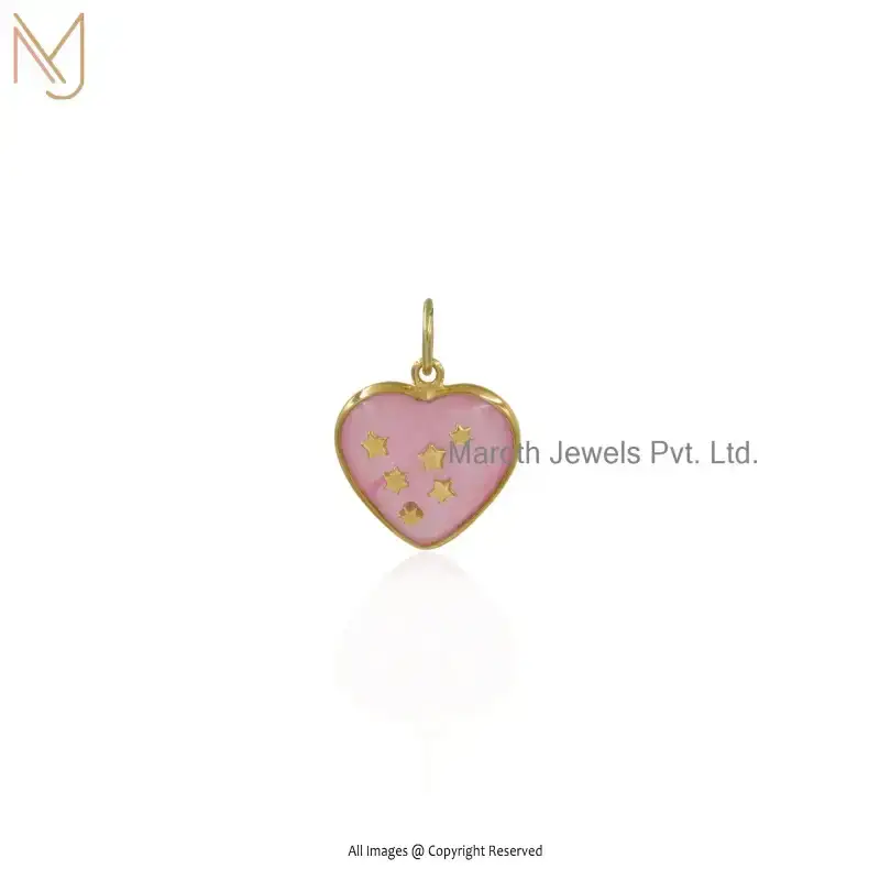 14K Yellow Gold Chalcedony Star Heart Pendant Jewelry Manufacturer