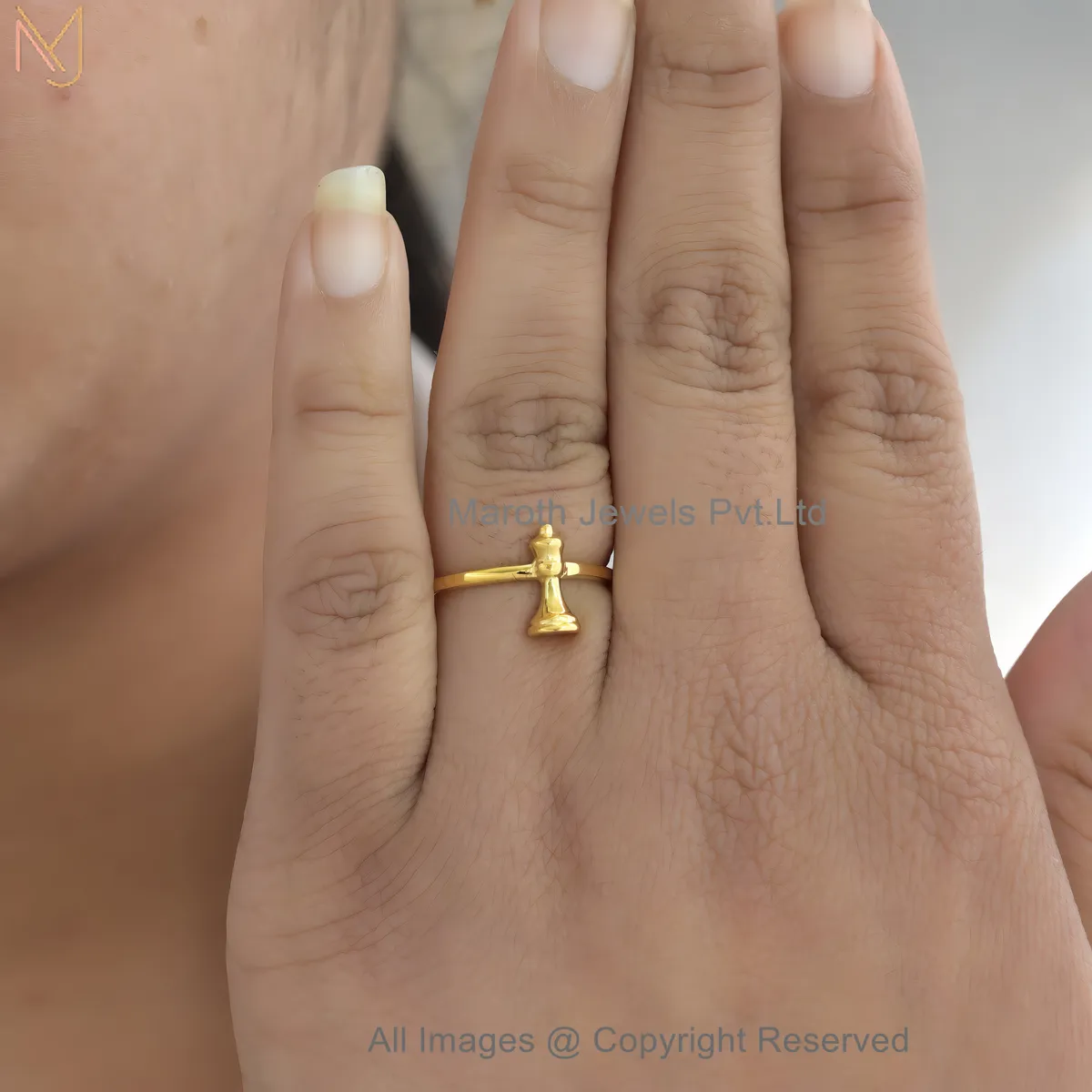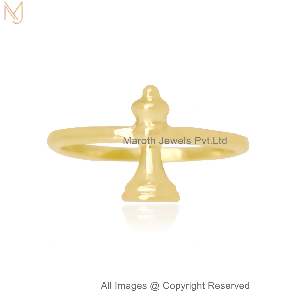 14K Yellow Gold Chess King Ring – Minimalist Royal Chess Piece Adjustable Band Manufacturer