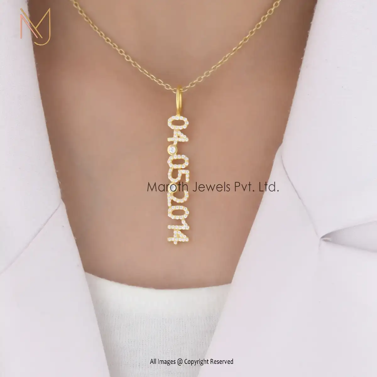 14K Yellow Gold Classic Date With Cubic Zircon On Numbers Pendant Custom Jewelry