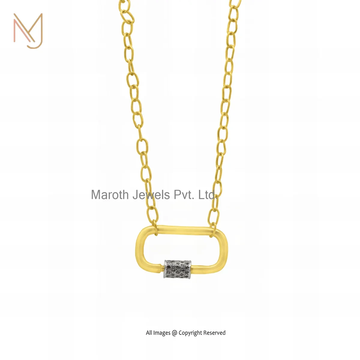14K Yellow Gold Cubic Zircon And Amethyst Lock Finding Chain Necklace Carabiner Lock USA