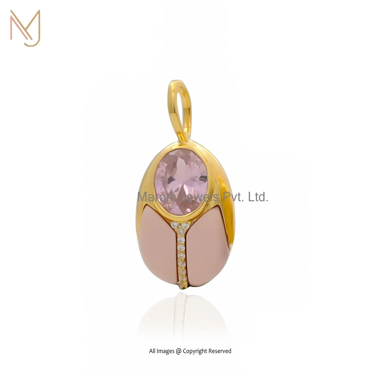 14K Yellow Gold Cubic Zircon & Blue Agate And Aquamarine Bug Pendant USA