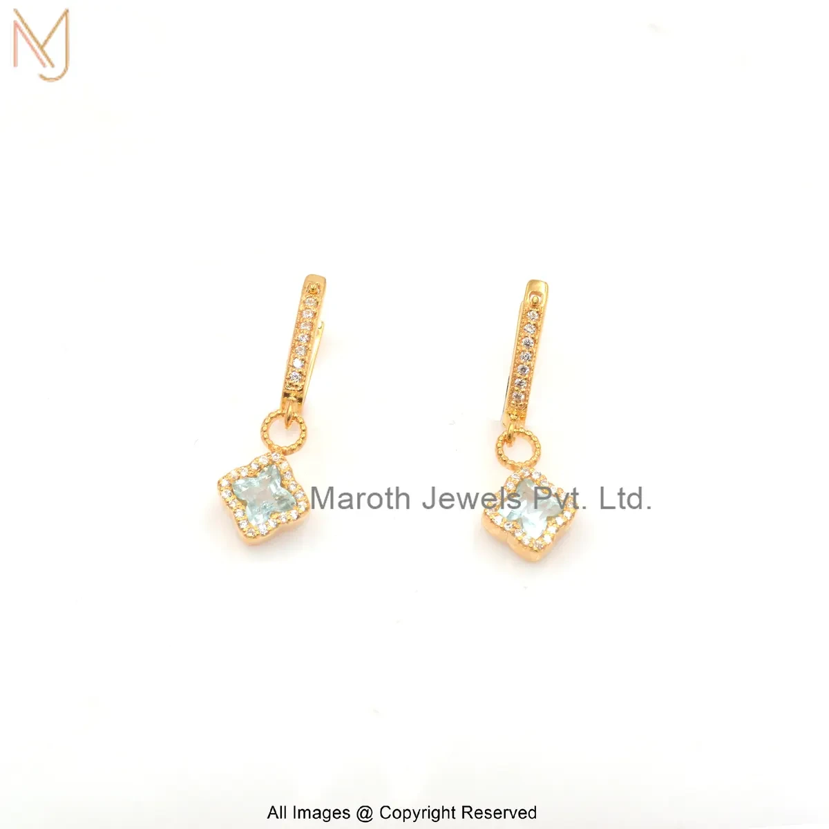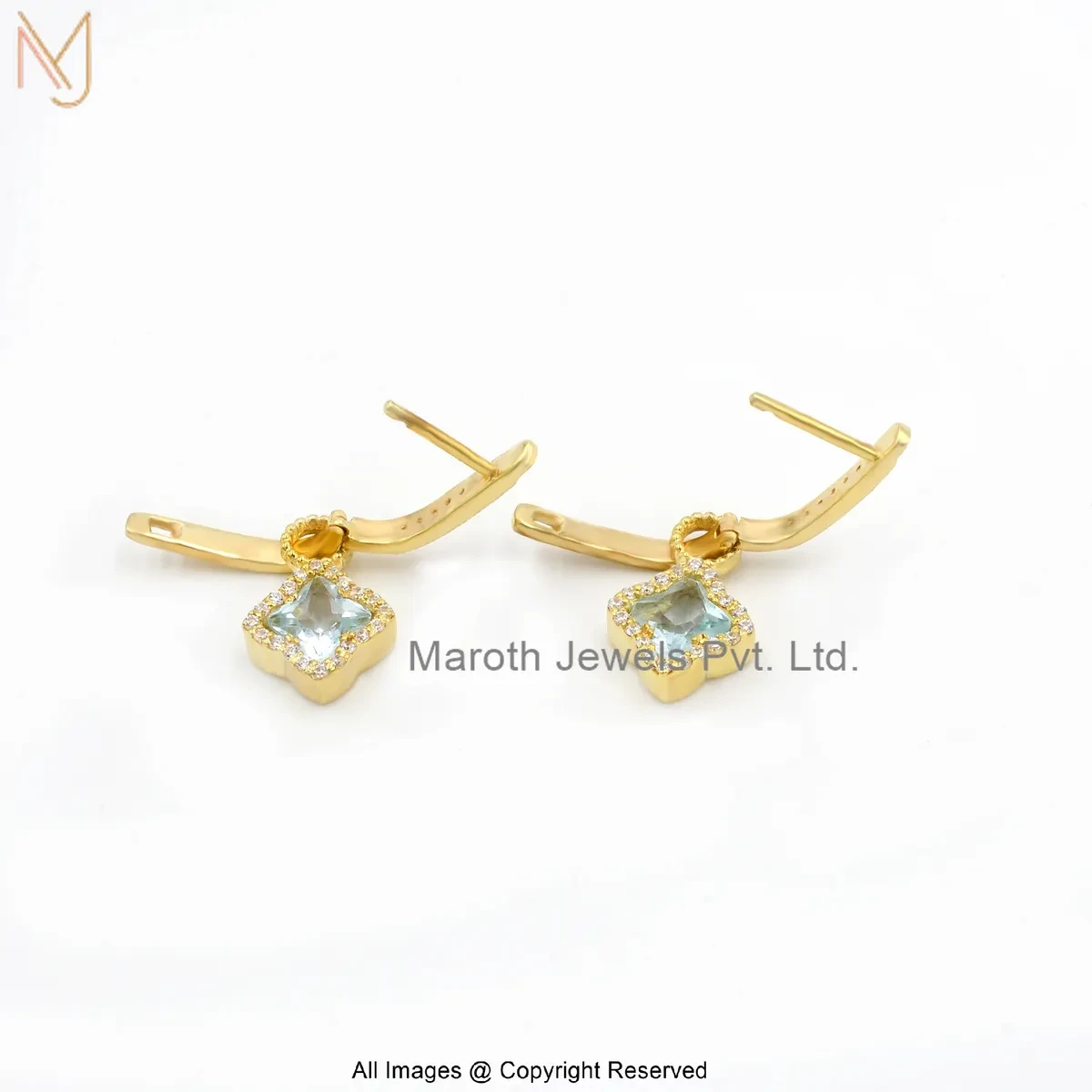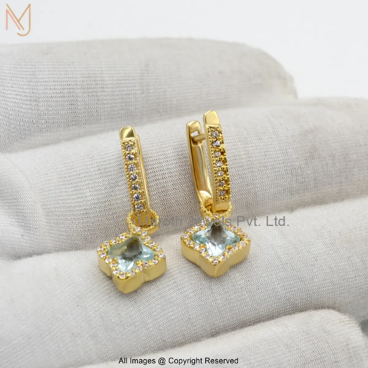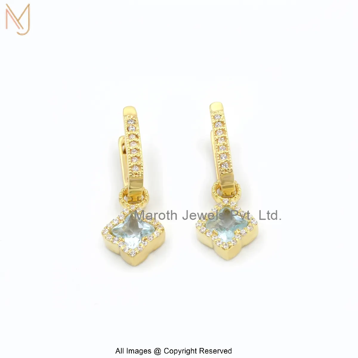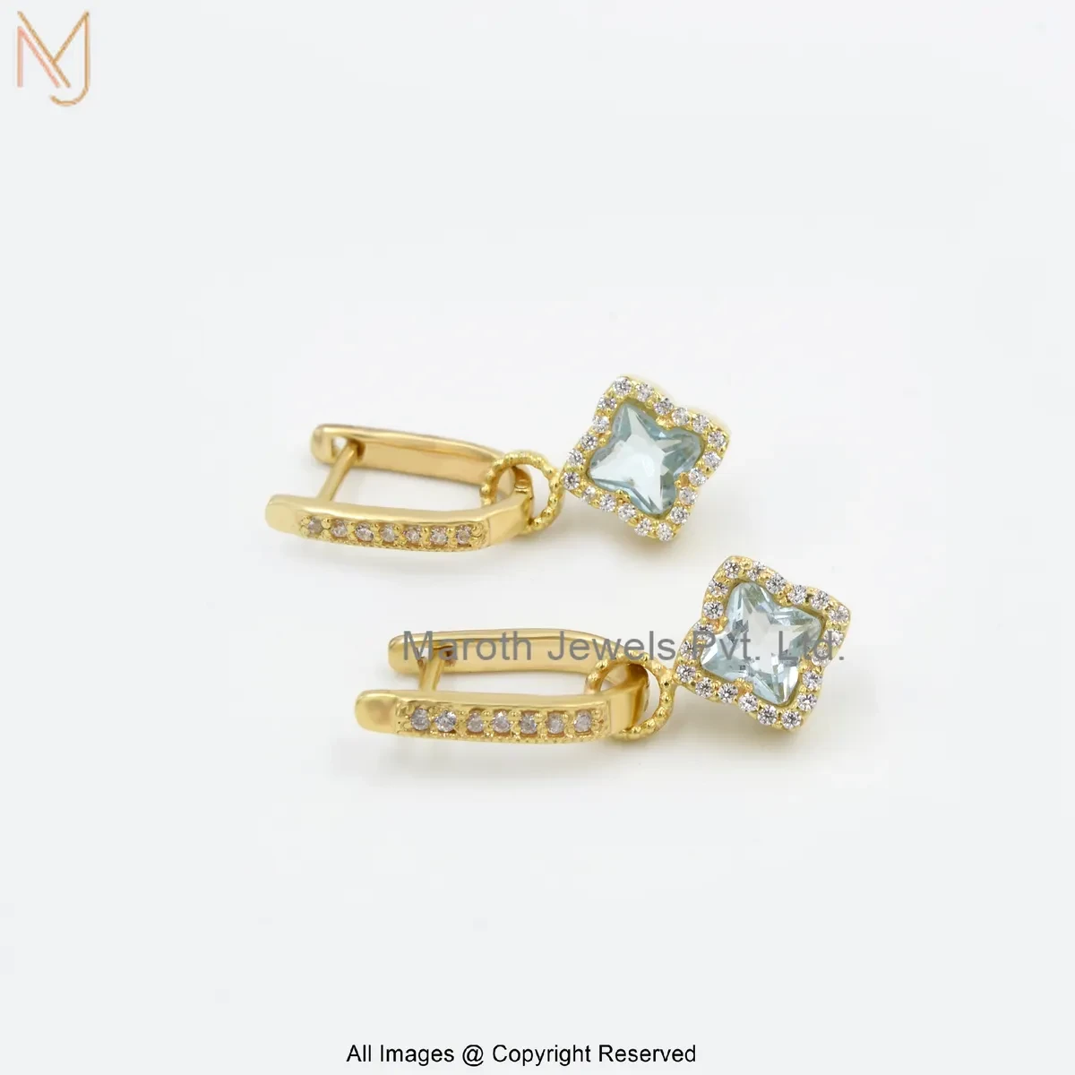 14K Yellow Gold Cubic Zircon Blue Topaz Gemstone Huggie Earring Manufacturer