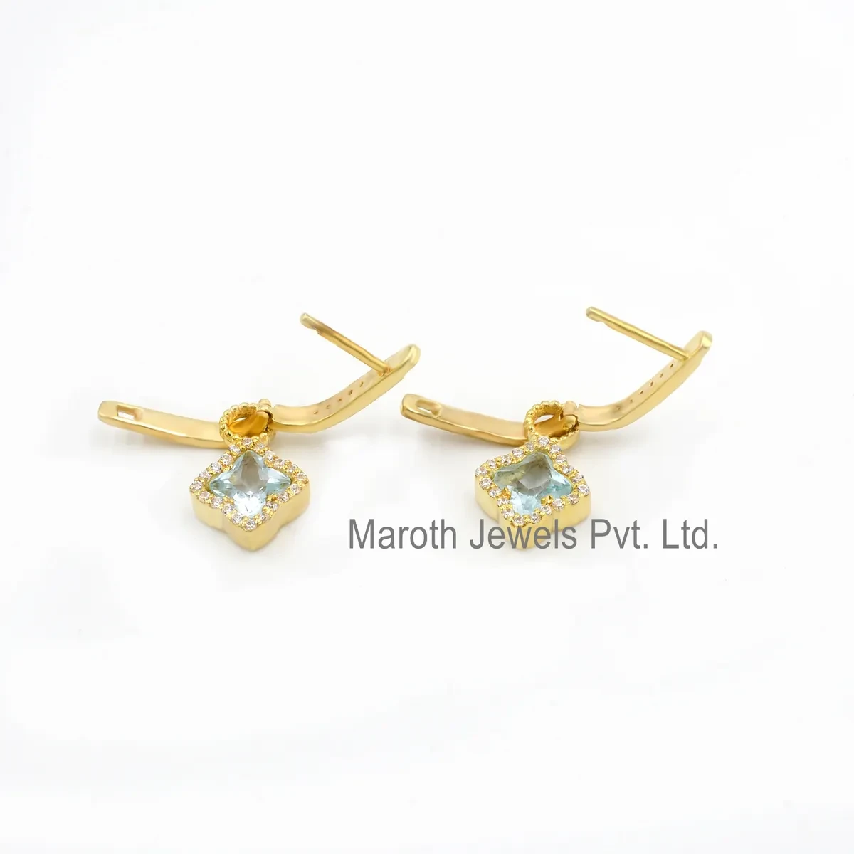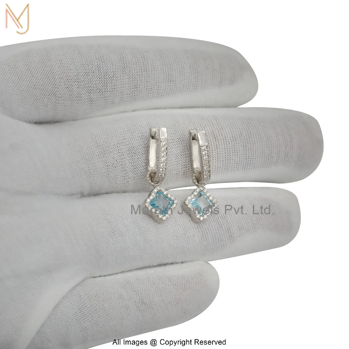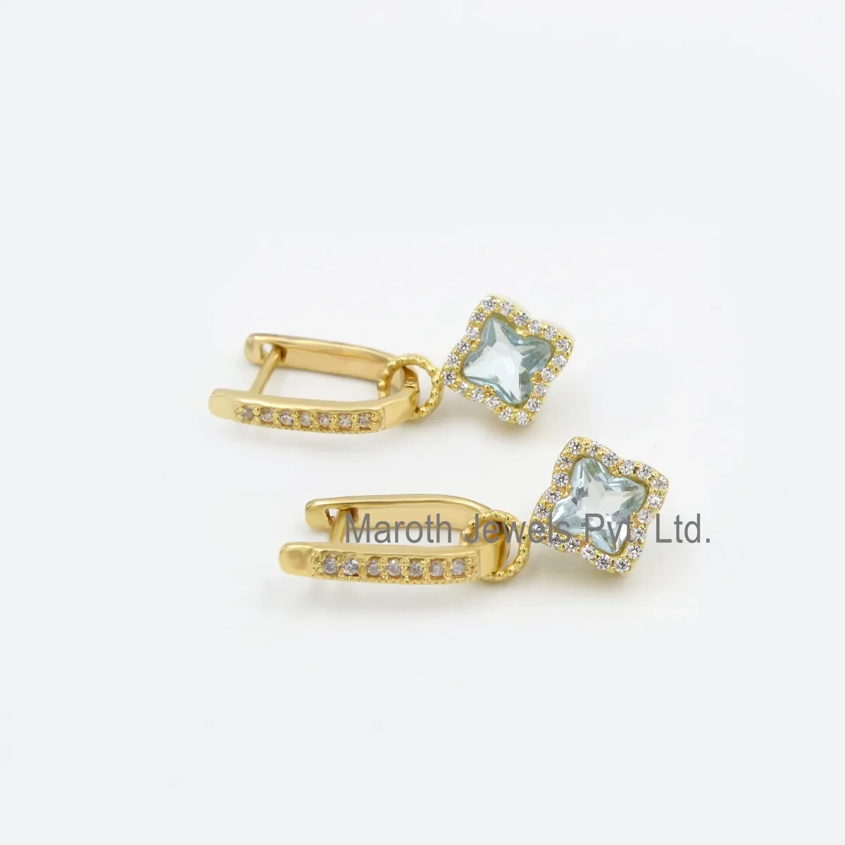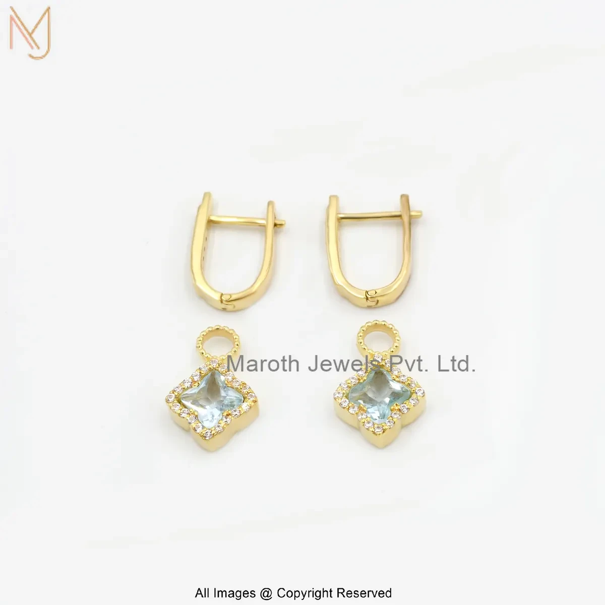14K Yellow Gold Cubic Zircon Blue Topaz Gemstone Huggie Earring Manufacturer