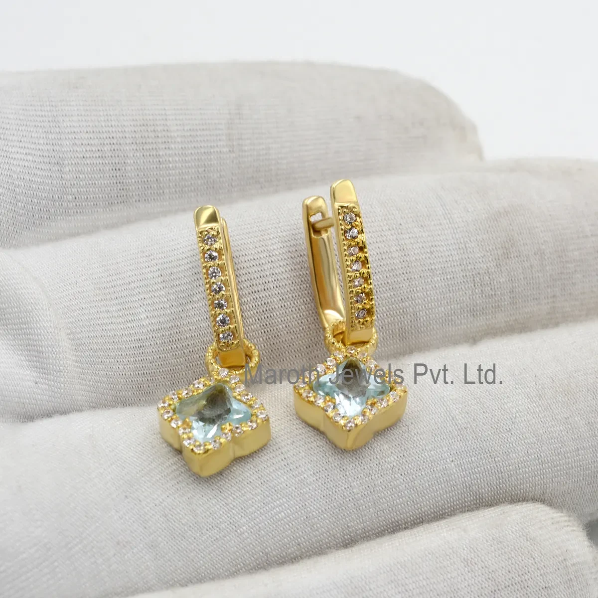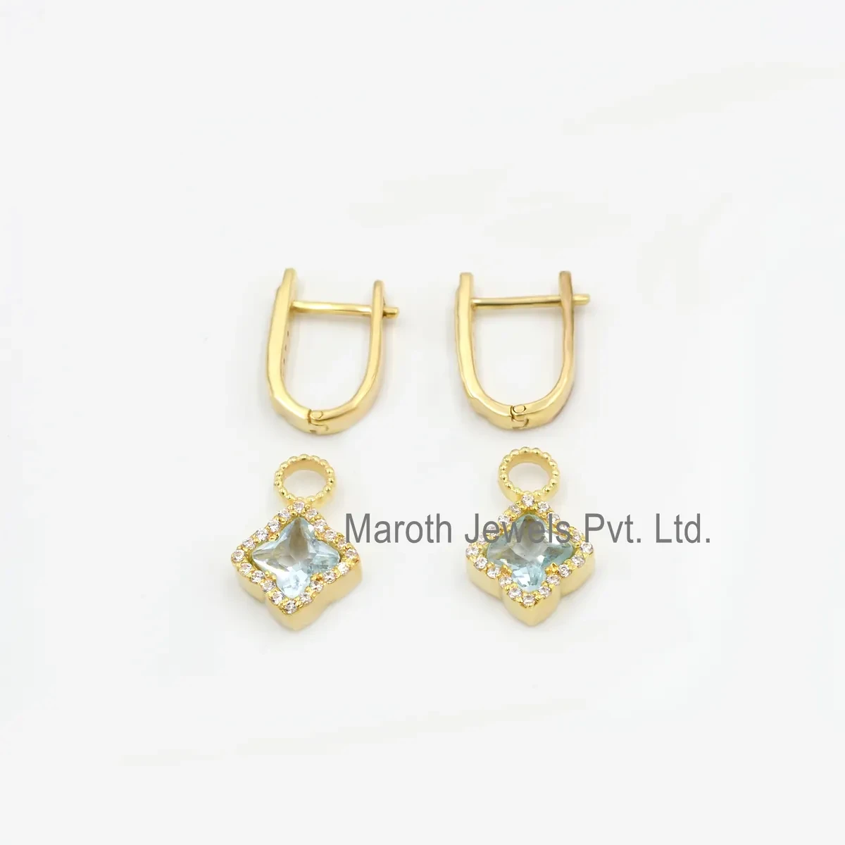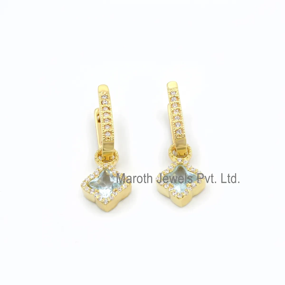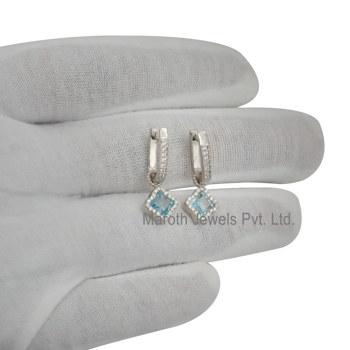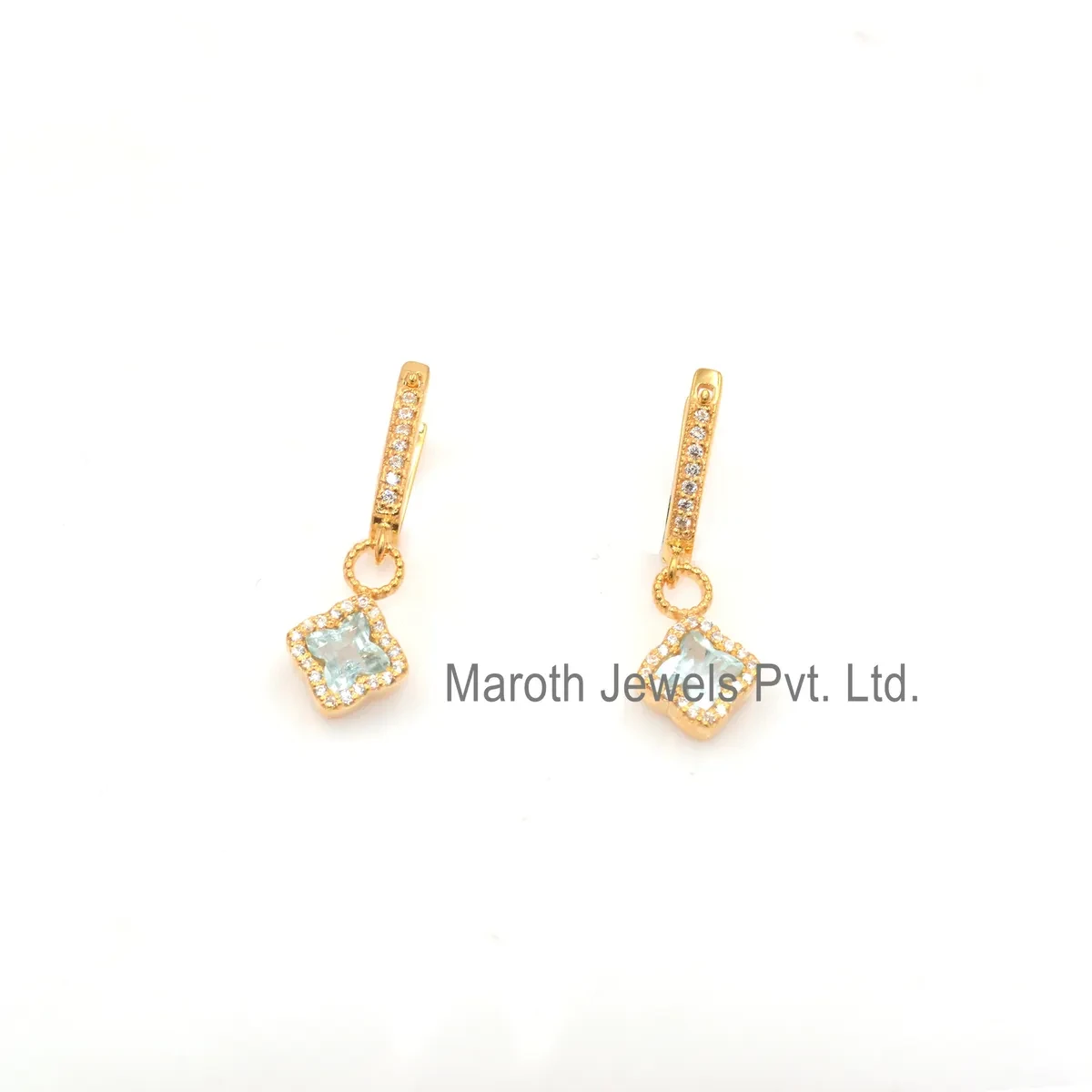 14K Yellow Gold Cubic Zircon Blue Topaz Gemstone Huggie Earring Manufacturer