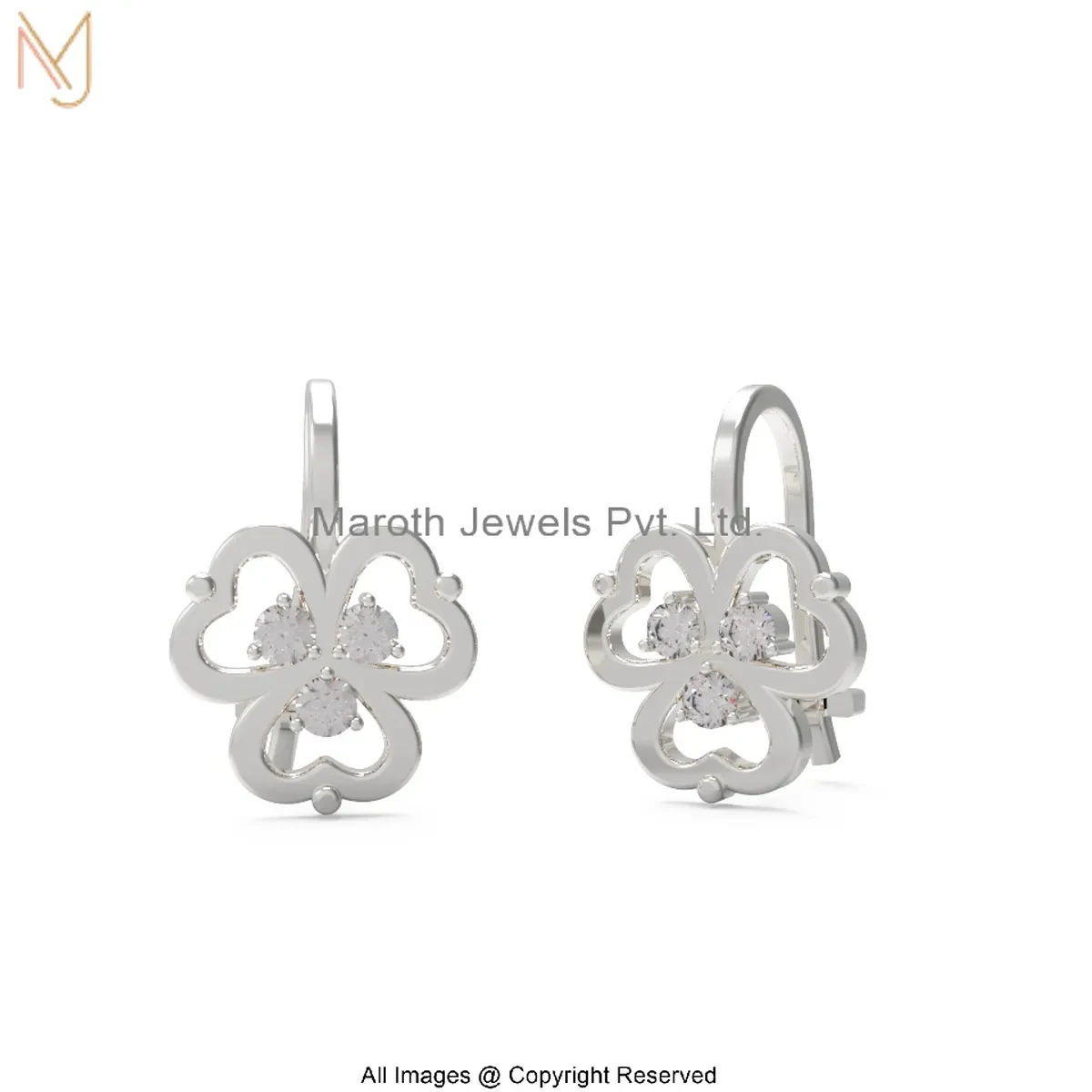 14K Yellow Gold Cubic Zircon Clover Diamond Drop Earring Jewelry Supplier
