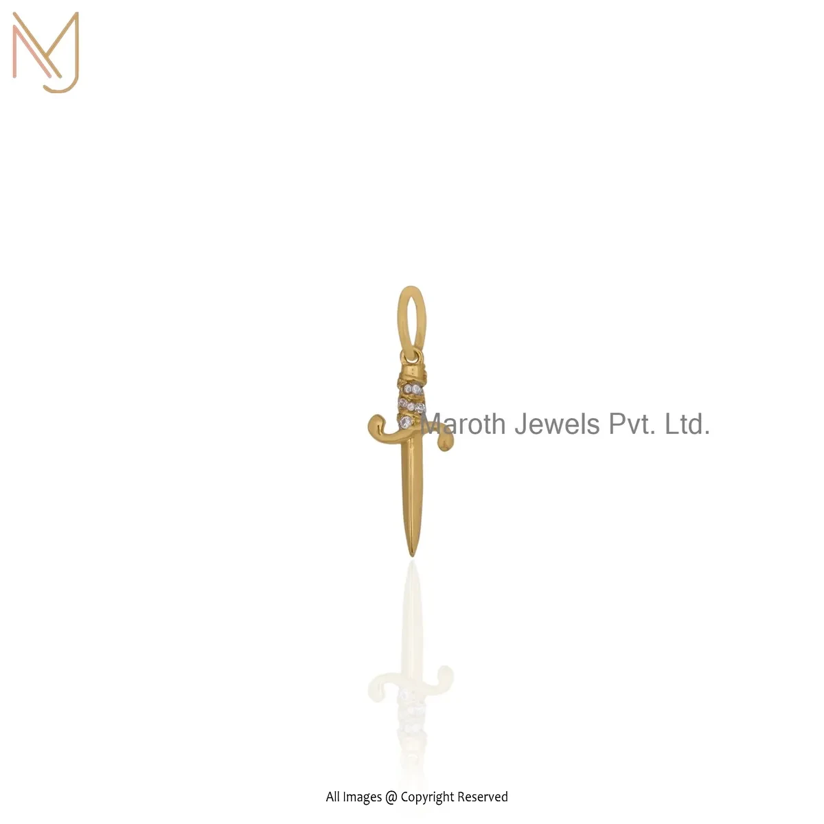 14K Yellow Gold Cubic Zircon Dagger Charm Pendant Manufacturer