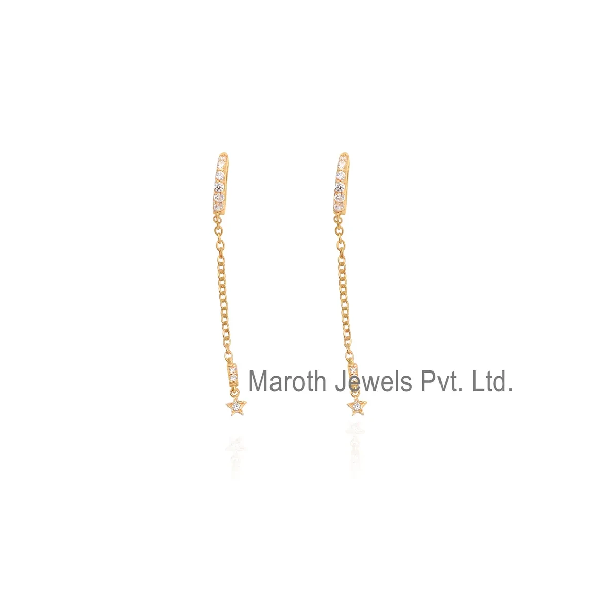 14K Yellow Gold Cubic Zircon Dangle Huggies Earring Manufacturer