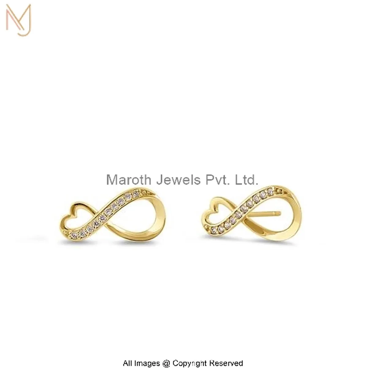 14K Yellow Gold Cubic Zircon Diamond Infinity Symbol Stud Earrings Custom Jewelry
