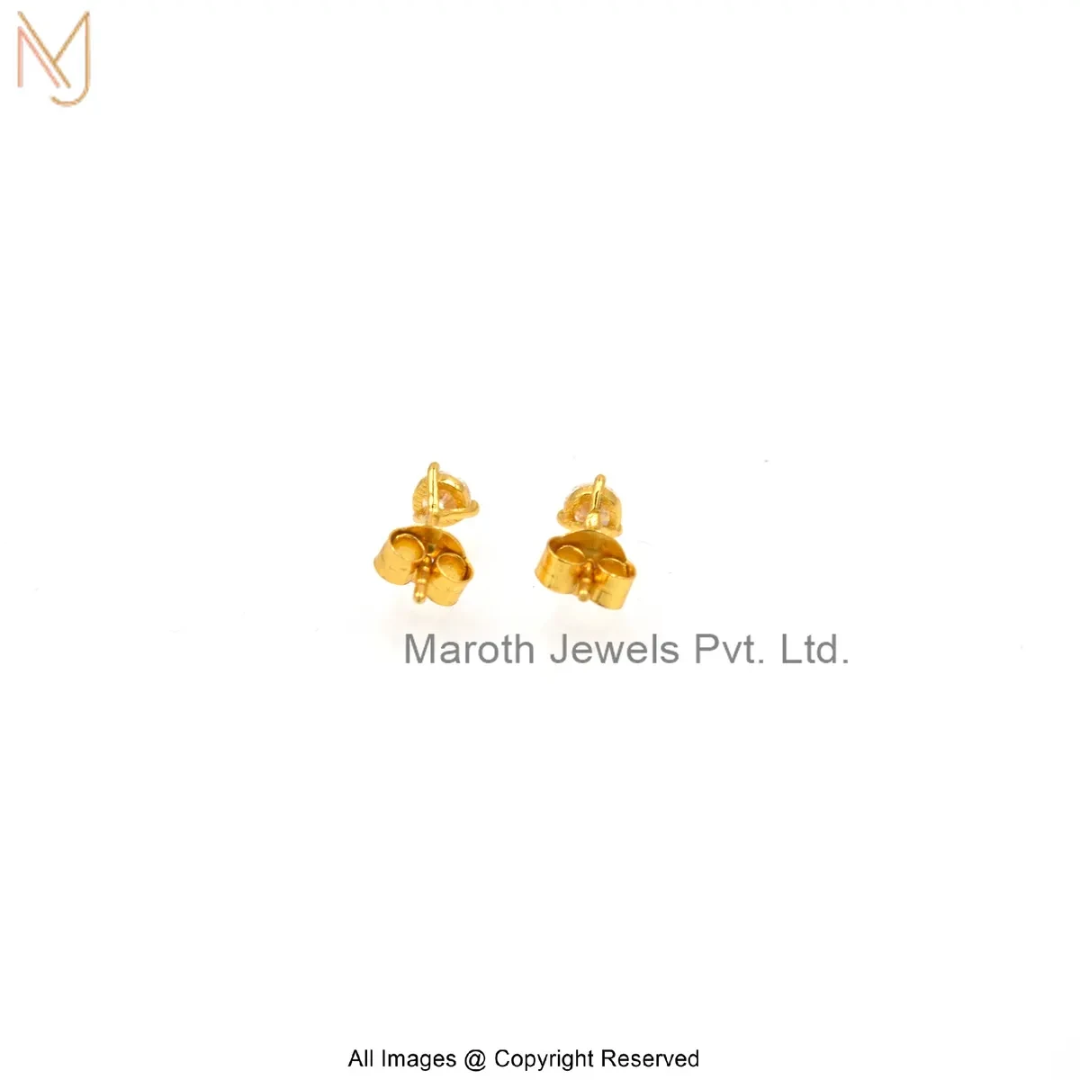 14K Yellow Gold Cubic Zircon Diamond Stud Earring Custom Jewelry