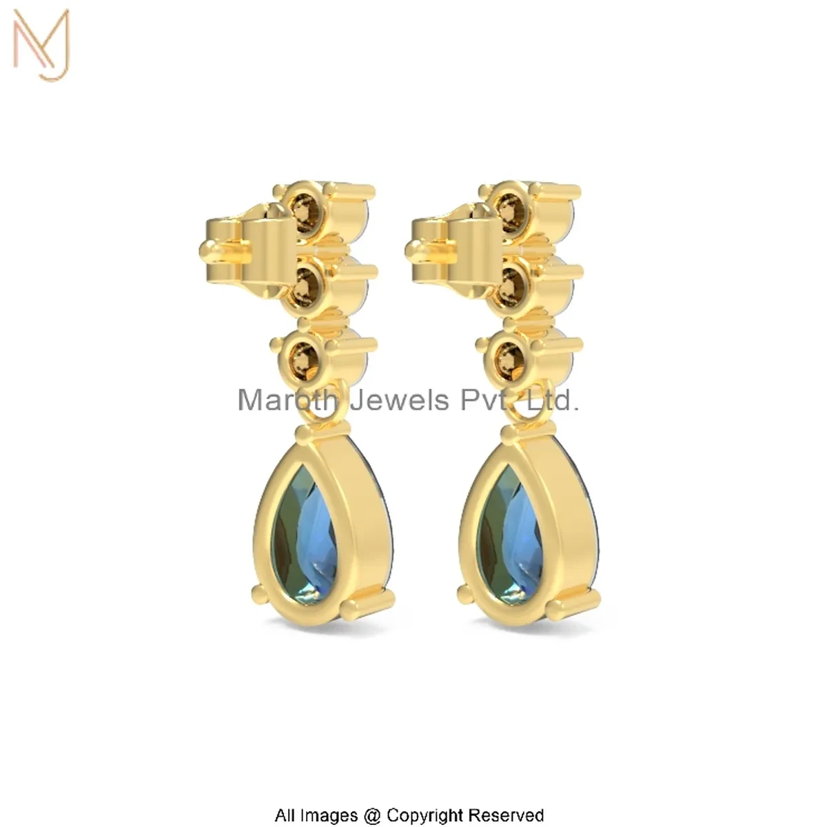 14K Yellow Gold Cubic Zircon Diamond Vintage Wine Dangle Earrings Manufacturer