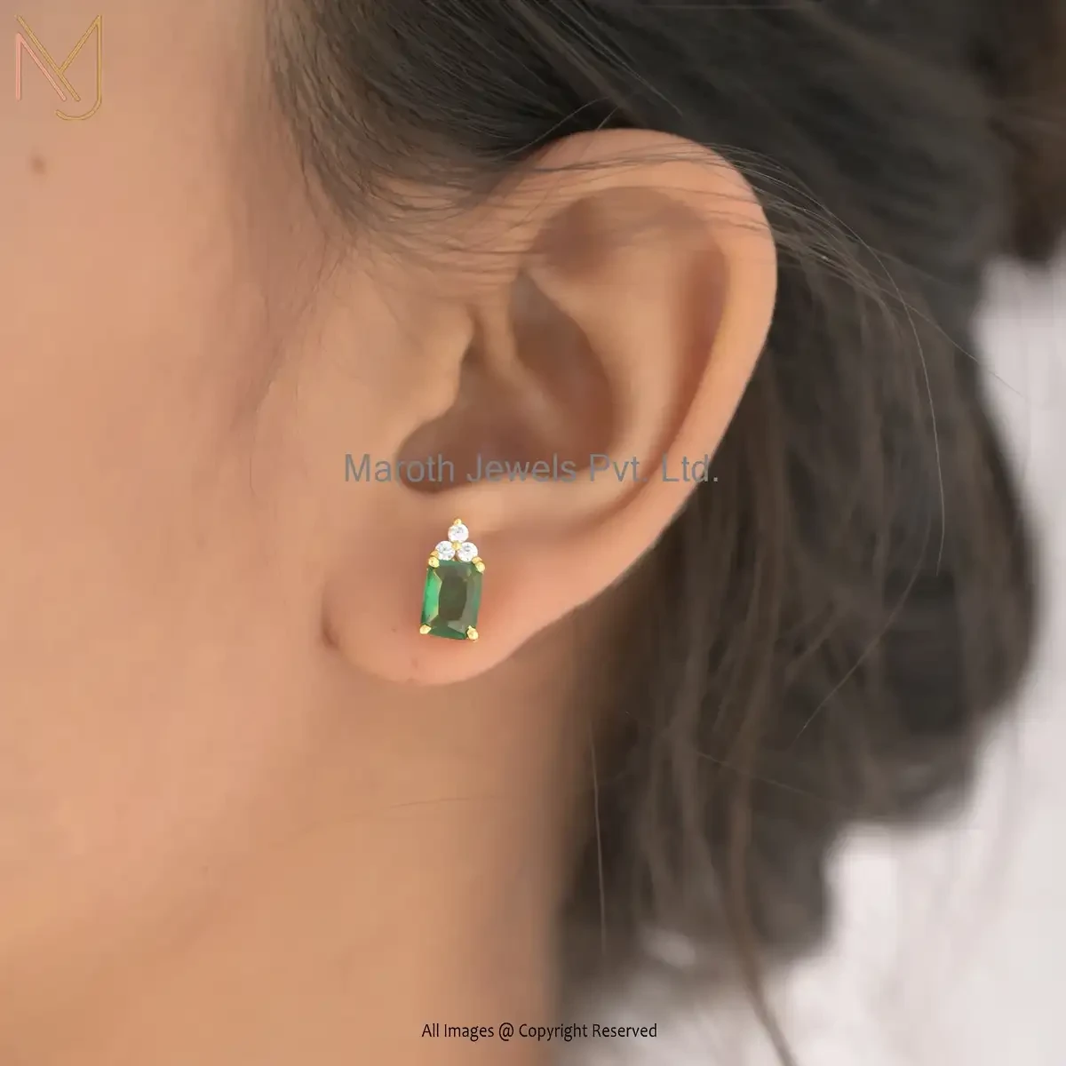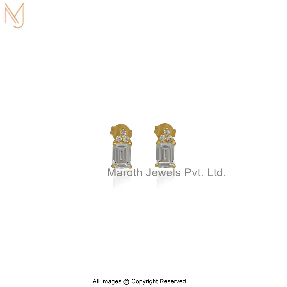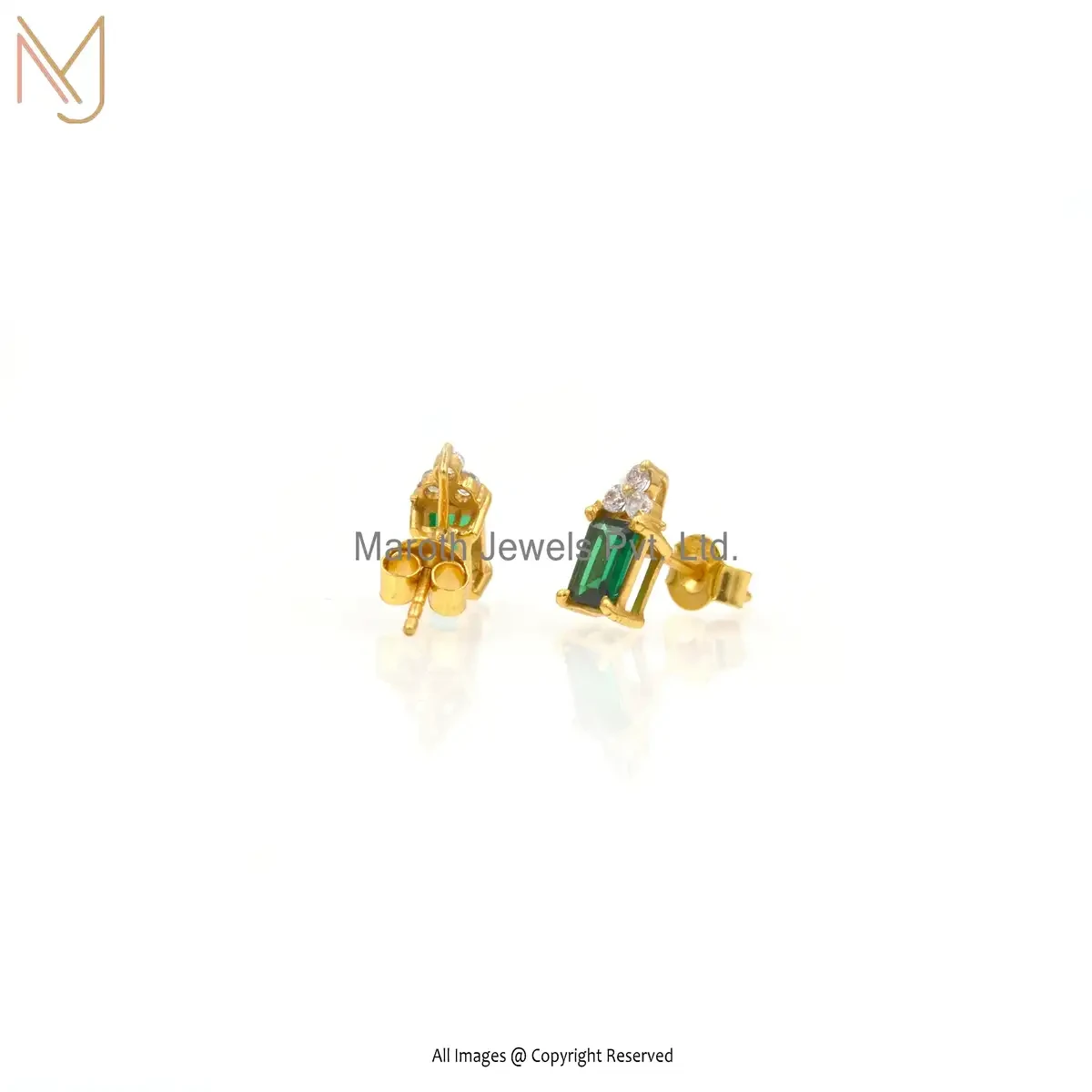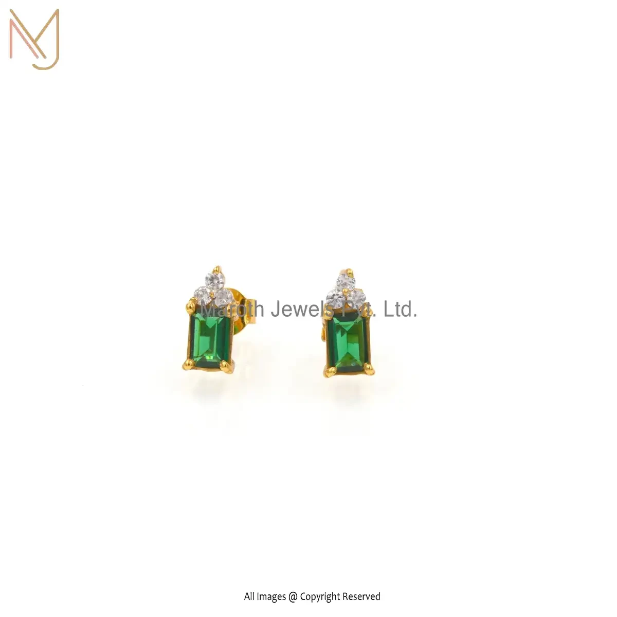 14K Yellow Gold Cubic Zircon Emerald Stud Earring Jewelry Supplier