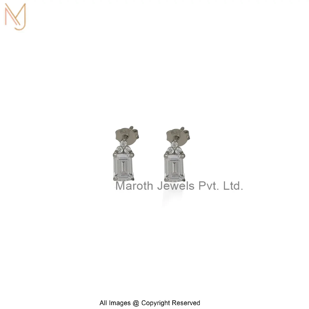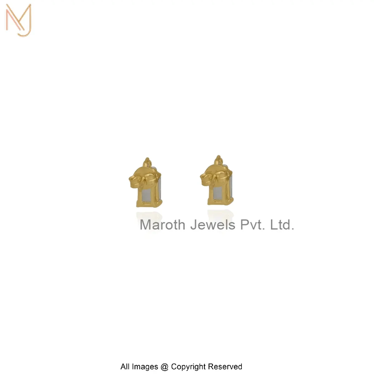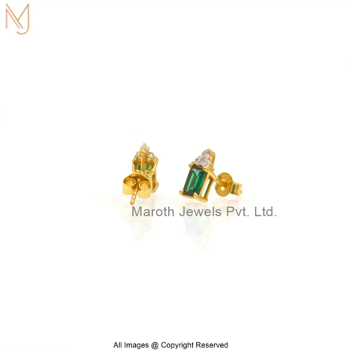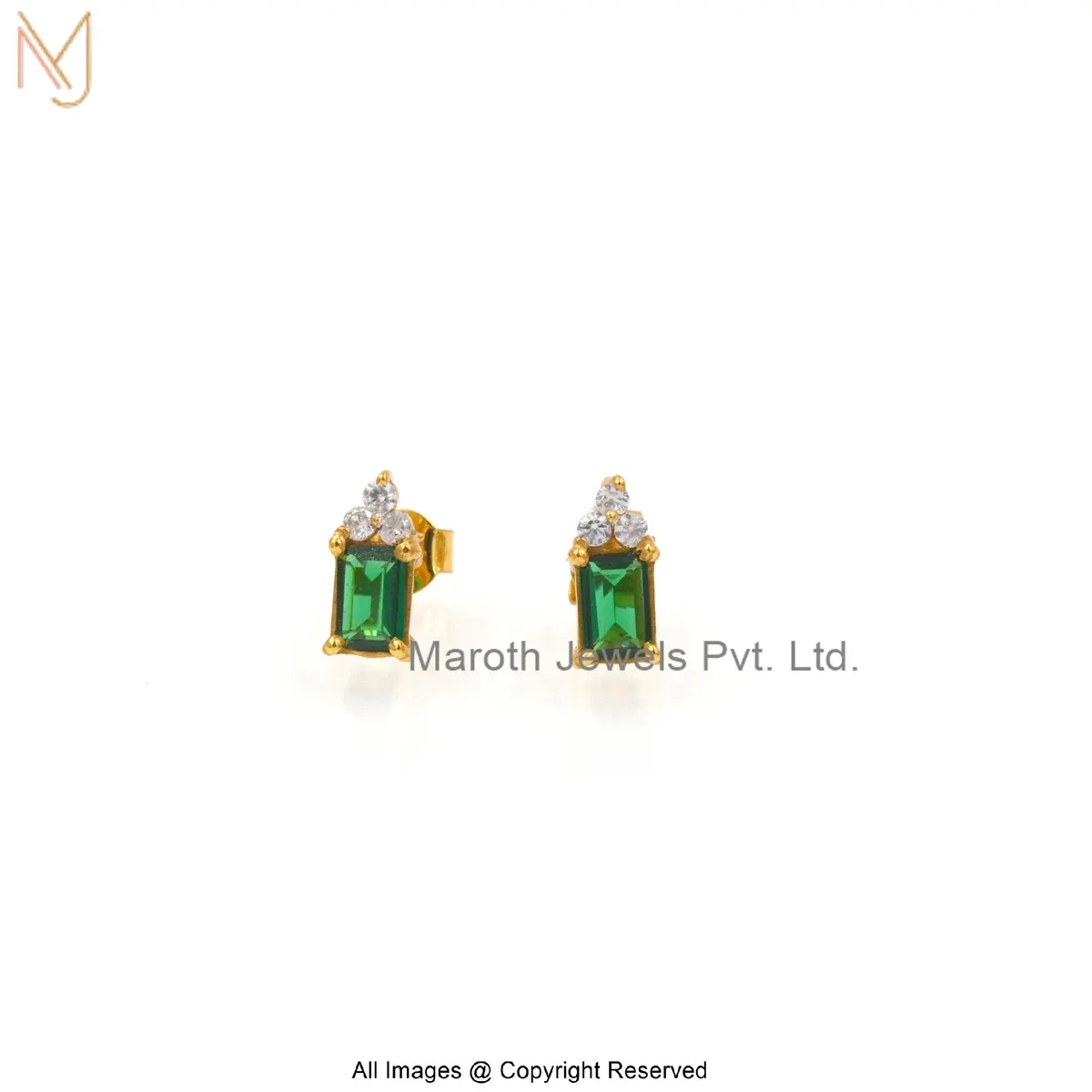 14K Yellow Gold Cubic Zircon Emerald Stud Earring Jewelry Supplier