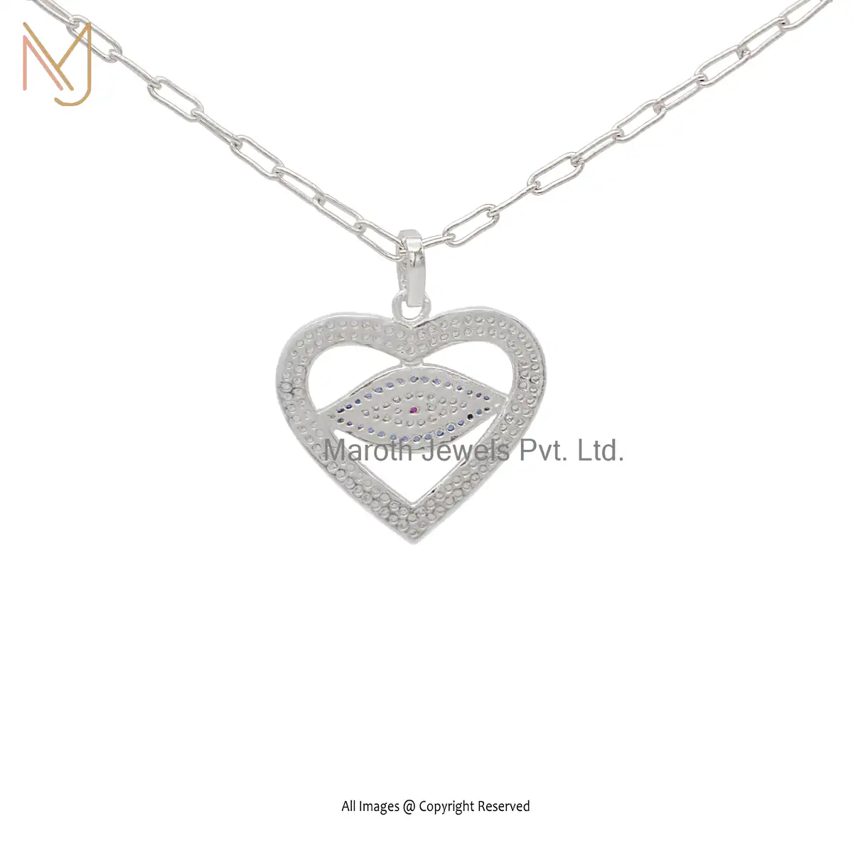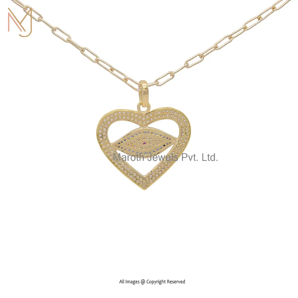14K Yellow Gold Cubic Zircon & Evil Eye Heart Desgin Pendant Custom Jewelry
