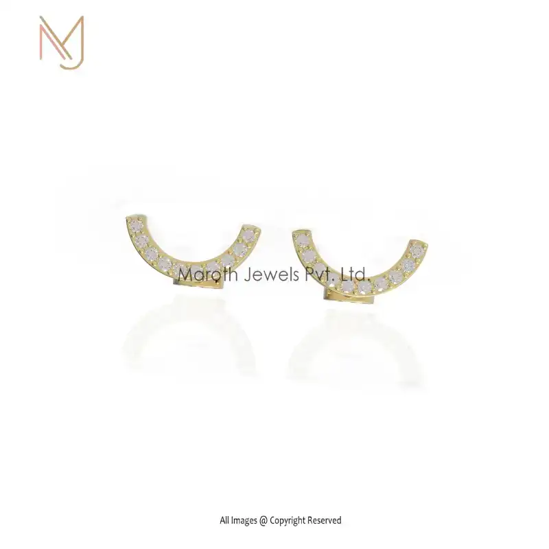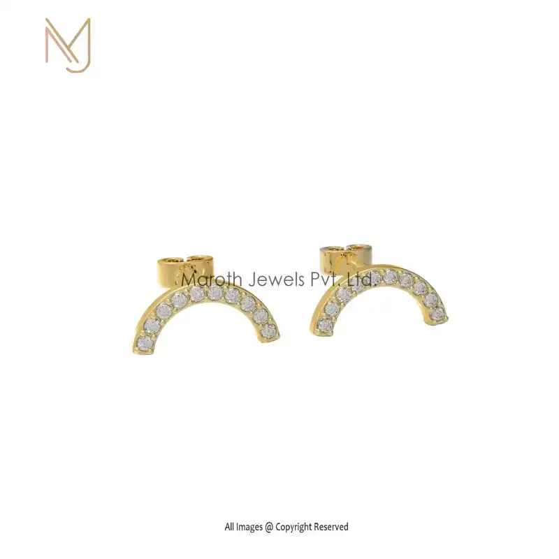 14K Yellow Gold Cubic Zircon Half Moon Earrings Jewelry Manufacturer