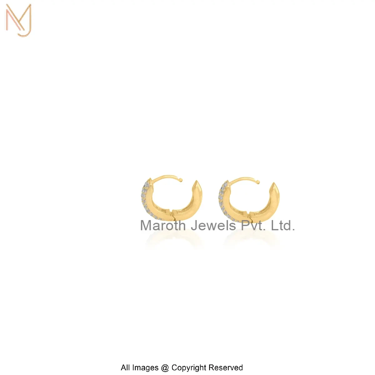 14K Yellow Gold Cubic Zircon Moissanite Huggie Hoop Earring Custom Jewelry