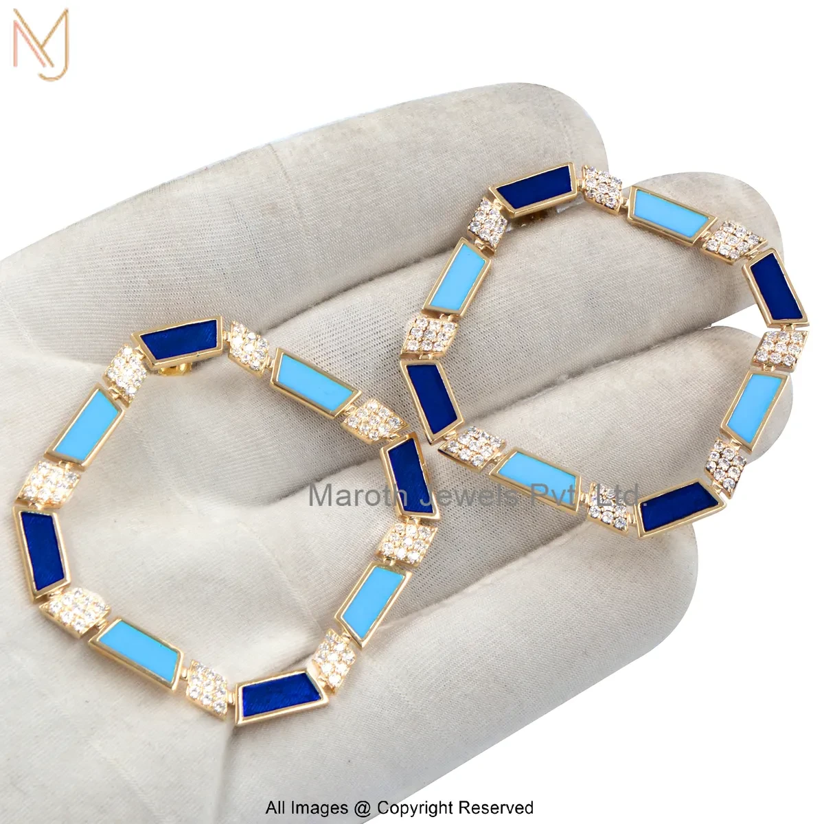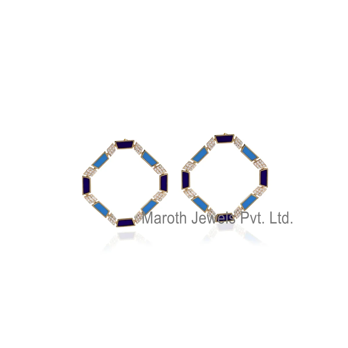 14K Yellow Gold Cubic Zircon Multi Enamel Drop Earring Jewelry Supplier