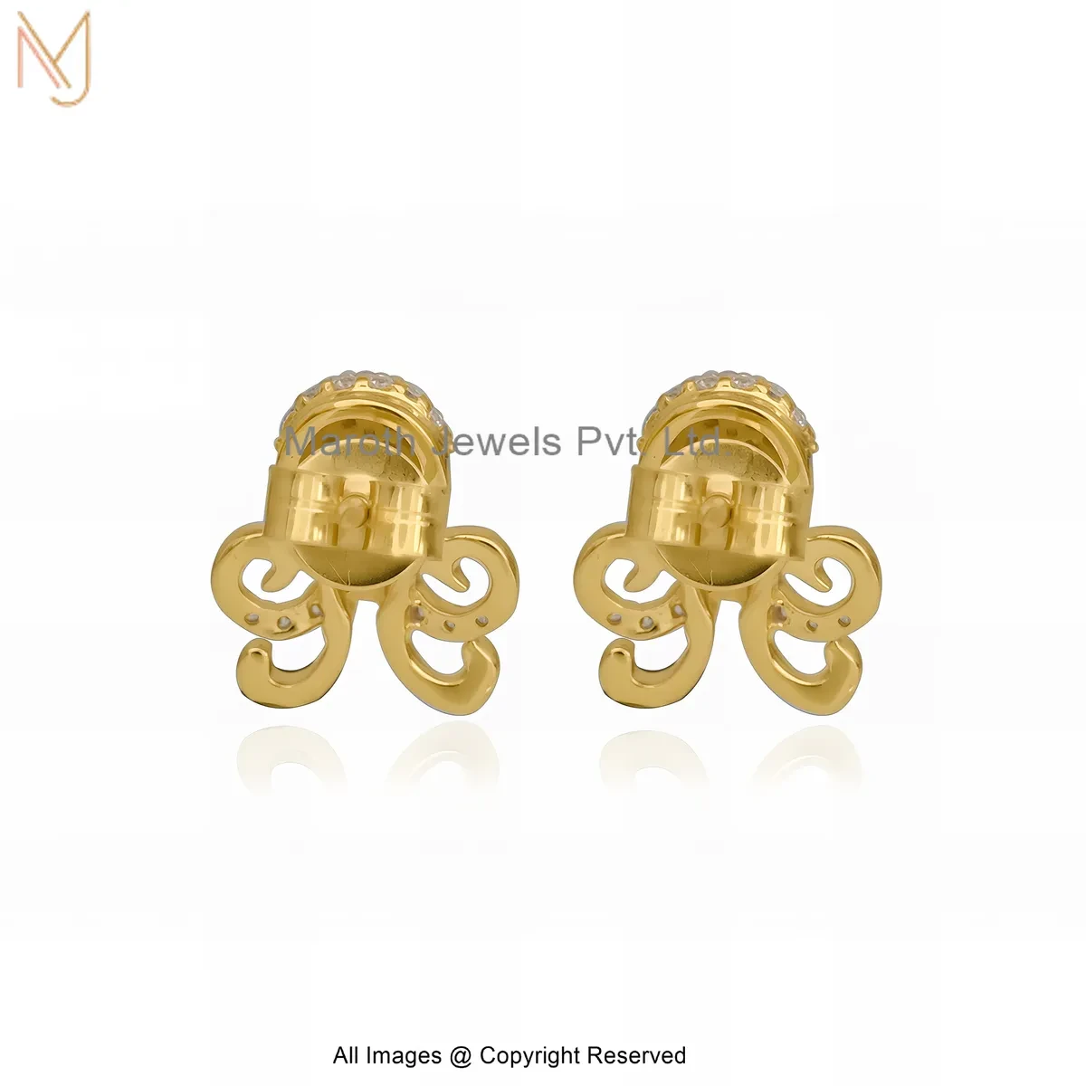 14K Yellow Gold Cubic Zircon Royal Octopus Diamond Stud Earrings Manufacturer